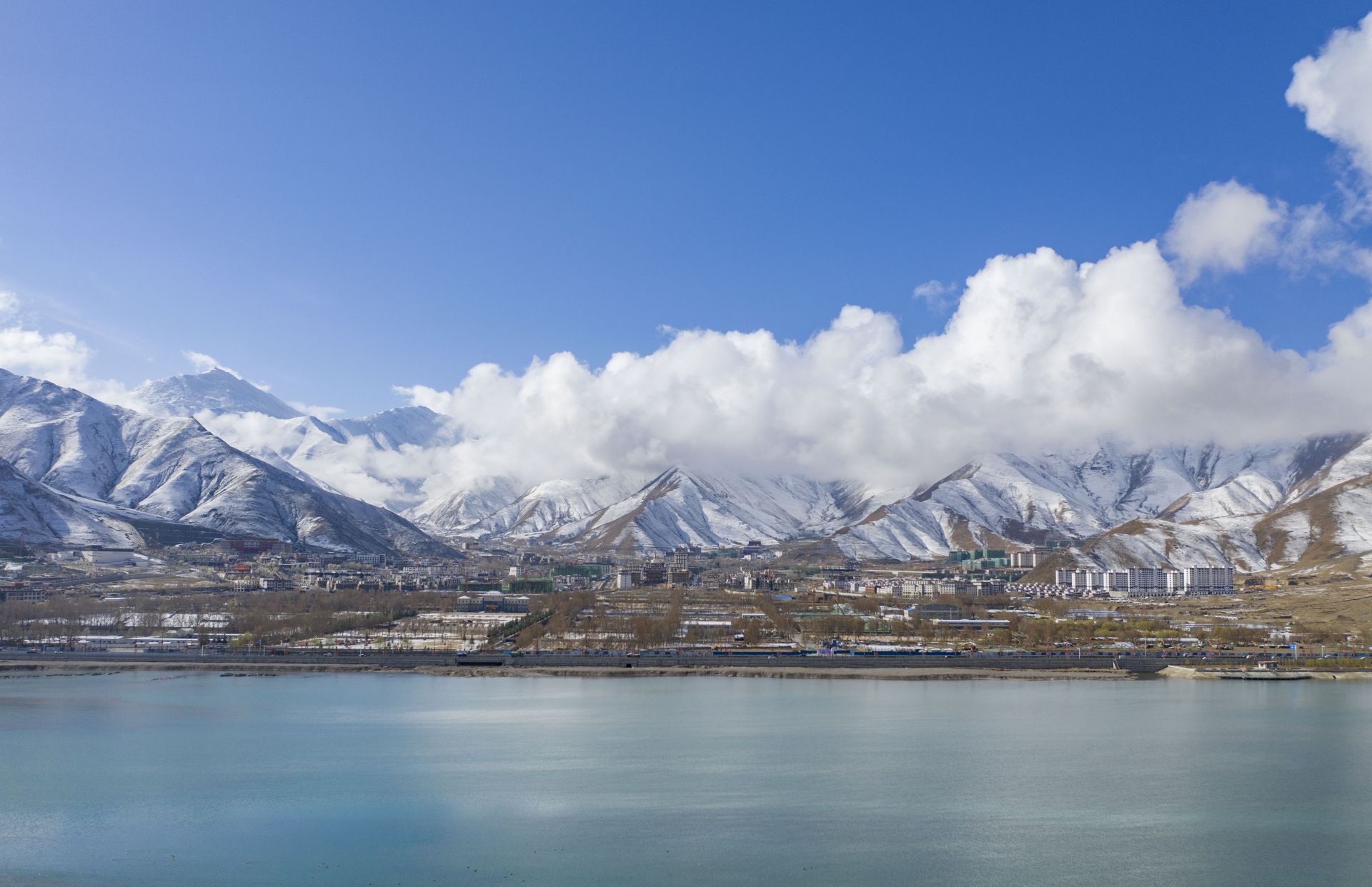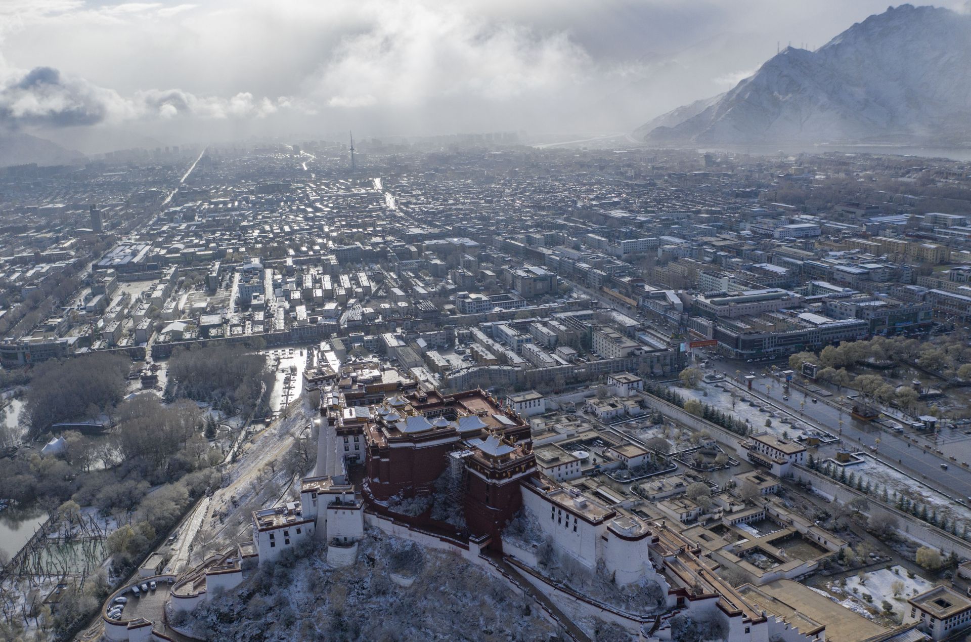 4月5日拍摄的拉萨雪景(无人机照片)。新华社记者 普布扎西 摄