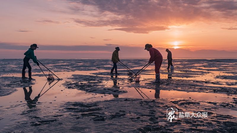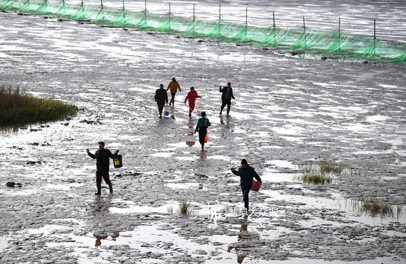 4月6日清晨,赶海的人们在东台弶港滩涂上用专用工具捕捞四角蛤。弶港近海海域位于南黄海,这里的海面既是长江与大海的交汇处,又是南北两股洋流的相交点,丰富的微生物,为四角蛤提供了充足食粮。在每年菜花黄季节到来的日子里,冬眠于近海沙洲中的四角蛤个个体壮膘肥,宛如宁波汤圆。 盐阜大众报报业集团全媒体记者 周晨阳 摄