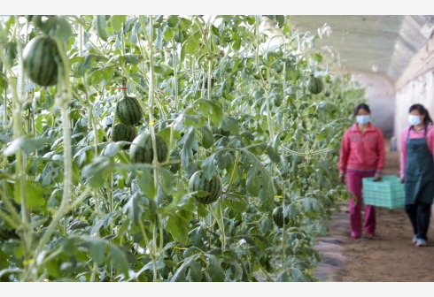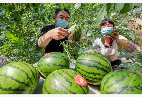 4月24日,庞各庄老宋瓜果专业合作社的员工准备采摘西瓜。近期,北京大兴区庞各庄镇老宋瓜果专业合作社的春季西瓜开始大批上市销售。疫情发生以来,庞各庄镇老宋瓜果专业合作社一度遇到用工、运输、防疫等困难,庞各庄镇党委和政府积极为合作社协调农业用工、肥料调运、调配防疫物资,让合作社顺利开始农业生产。该合作社采取了“企业+合作社+基地+农户”的模式,472户当地农民加入合作社,2007年至今合作社销售西瓜20.62万余吨,带动农民增收1.65亿元。新华社记者 李欣 摄