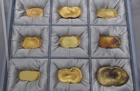 这是发掘出水的金锭(4月15日摄)。 新华社记者刘坤摄