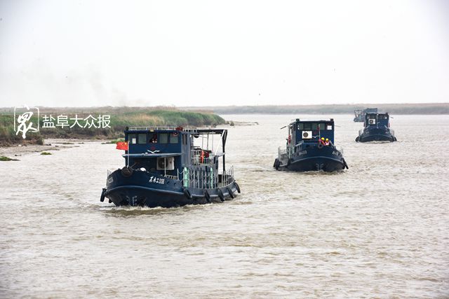5月1日,盐城市黄沙港闸下港道,6艘清淤船正在协同作业,清除港道淤积杂物,打通汛期洪水走廊,充分发挥射阳河、黄沙港、新洋港、斗龙港四大港的排水效能。为扎实做好今年防汛抗旱各项工作,盐城市四港港道监测管理所从紧、从实抓好汛前备战,闸下港道清淤人员抢抓有利时机,放弃假日休息,党员们率先垂范,带头奋战在清淤第一线。盐阜大众报报业集团全媒体记者 王金成 摄