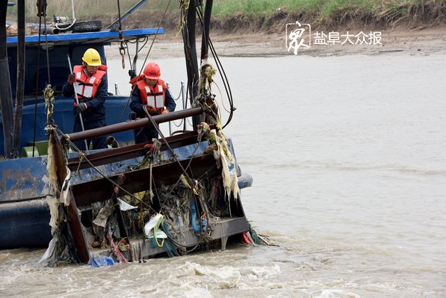 齐心合力,清除港道杂物。