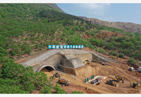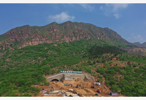 5月9日,工人在迁安市大五里乡境内的京秦高速公路遵(遵化)秦(秦皇岛)段干柴峪隧道建设工地施工(无人机照片)。近日,河北省境内的京秦高速公路遵(遵化)秦(秦皇岛)段正在抓紧建设,预计2022年底建成通车。京秦高速公路全长264公里,是北京通往天津、秦皇岛及东北地区的一条重要高速公路。目前,北京至遵化段已通车,全线通车后,秦皇岛至北京将至少缩短半小时车程。 新华社记者 杨世尧 摄