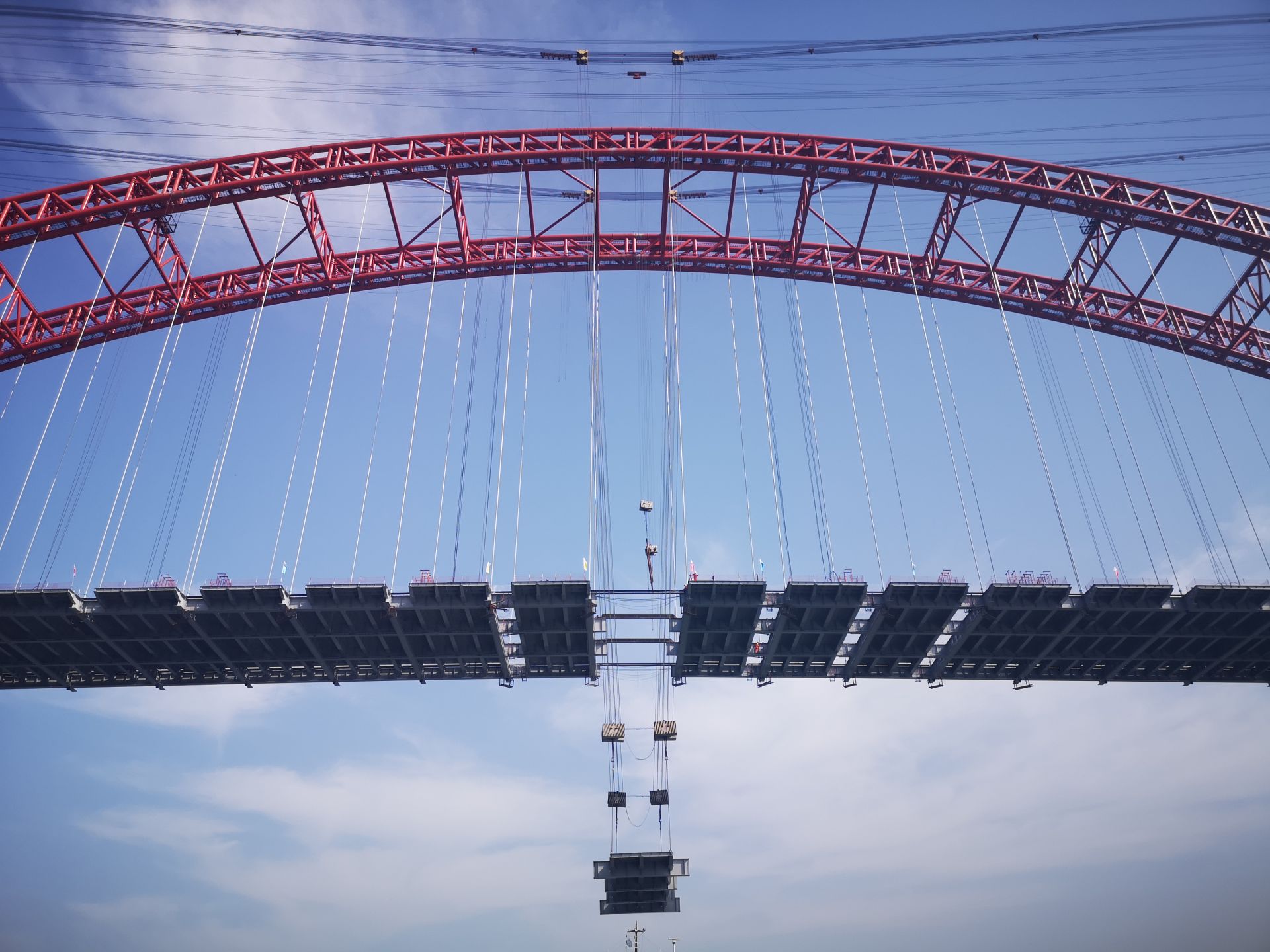 5月18日,合江长江公路大桥主梁正在进行最后的吊装作业。 当日,位于四川合江县的飞燕式钢管混凝土系杆拱桥——合江长江公路大桥主梁成功合龙,为2020年底建成通车奠定基础。合江长江公路大桥主跨507米,主桥长668米,是“渡改桥”重点工程,项目建成后将成为连接合江县南岸老城区和北岸新城区的重要通道,彻底结束两岸群众摆渡过江的历史。 新华社发
