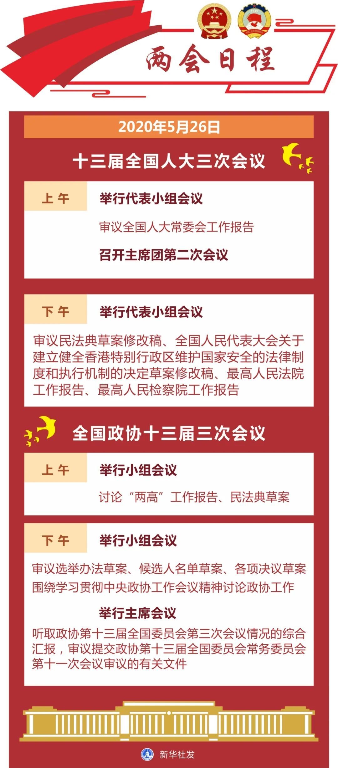 ◎十三届全国人大三次会议26日上午举行代表小组会议,审议全国人大常委会工作报告。全国政协十三届三次会议26日上午举行小组会议,讨论“两高”工作报告、民法典草案。