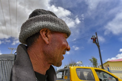 工人在新疆塔什库尔干塔吉克自治县塔什库尔干乡色日克塔什村施工(6月10日摄)。 新华社记者 胡虎虎 摄
