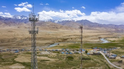 新疆塔什库尔干塔吉克自治县塔什库尔干乡色日克塔什村的通信基站(6月10日摄,无人机照片)。 新疆塔什库尔干塔吉克自治县位于帕米尔高原东部,平均海拔4000米以上。长期以来,受限于自然环境,当地偏远山村与外界交往的“信息通道”质量欠佳。为切实解决全县5200多户山区居民收听收看当地广播电视节目的需求,提高脱贫攻坚质量,丰富农牧民精神文化生活,该县于今年实施光纤入户工程。目前,各施工队克服高海拔、复杂气候等困难,抓紧有序推进工程。 新华社记者 胡虎虎 摄