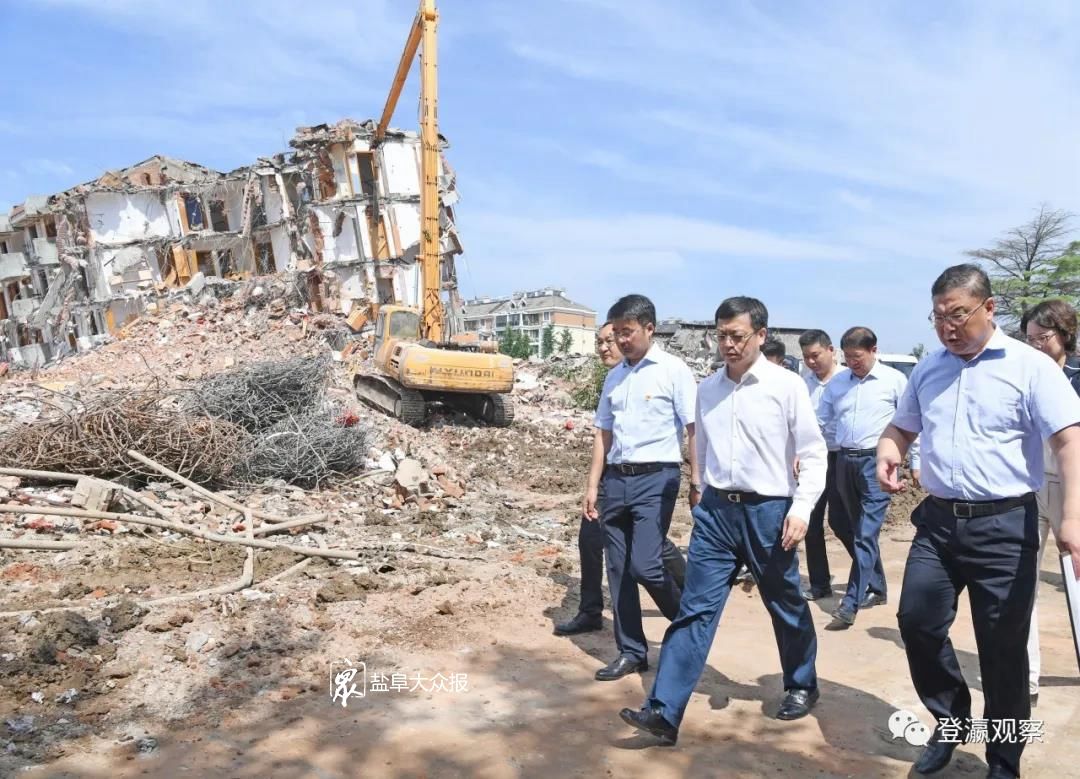 △市长曹路宝察看水利工程管理处东侧办公楼征迁现场。 盐阜大众报报业集团全媒体记者 王亚洲 摄