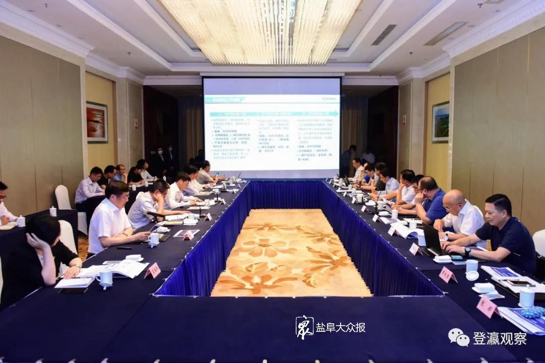△7月3日下午,市长曹路宝与宝钢股份党委常委、宝武盐城钢铁工程指挥部总指挥施兵一行召开座谈会。 盐阜大众报报业集团全媒体记者 李思远 摄