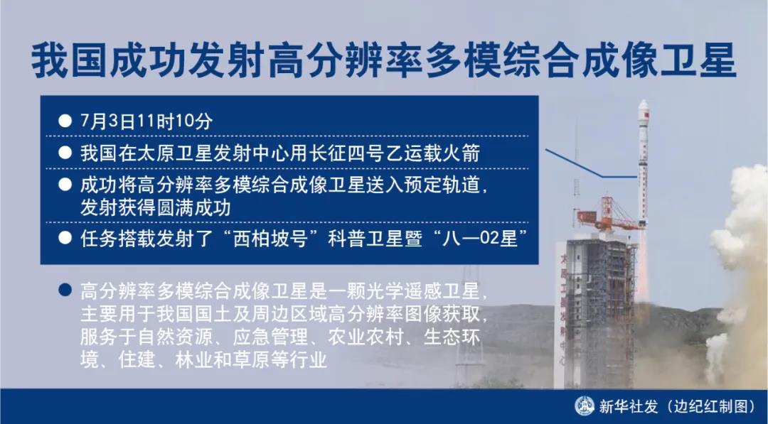 ◎我国在太原卫星发射中心用长征四号乙运载火箭成功发射高分辨率多模综合成像卫星。