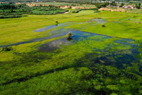 这是7月22日拍摄的山西省朔州市右玉县苍头河湿地公园(无人机照片)。 新华社记者 曹阳 摄