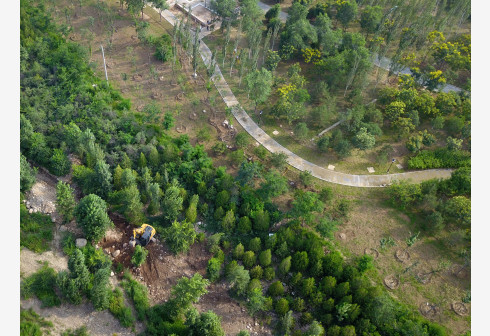 这是位于延庆赛区的冬奥森林公园(7月29日无人机拍摄)。在申冬奥成功五周年之际,记者来到北京、延庆和张家口三个赛区,探访处于建设改造冲刺阶段的冬奥场馆和设施,近距离了解2022北京冬奥会筹备情况。 新华社记者 张晨霖 摄