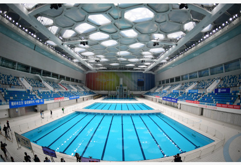 这是位于北京赛区的国家游泳中心(7月28日摄)。北京冬奥会期间,国家游泳中心“水立方”将转换成“冰立方”,成为冰壶项目的比赛场馆。在申冬奥成功五周年之际,记者来到北京、延庆和张家口三个赛区,探访处于建设改造冲刺阶段的冬奥场馆和设施,近距离了解2022北京冬奥会筹备情况。新华社记者 张晨霖 摄