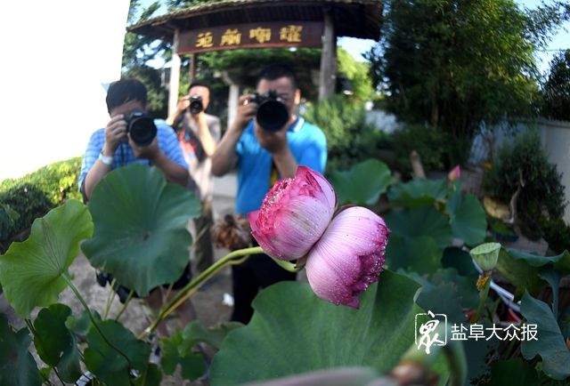 摄影爱好者为“并蒂莲”留影。