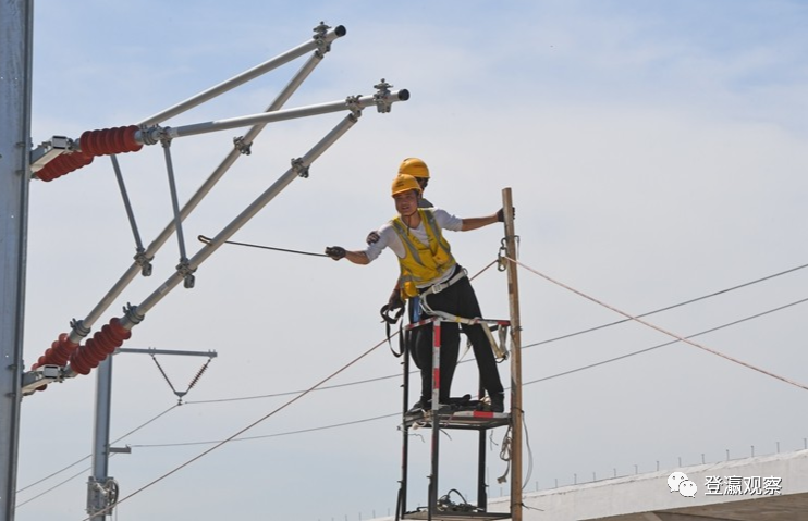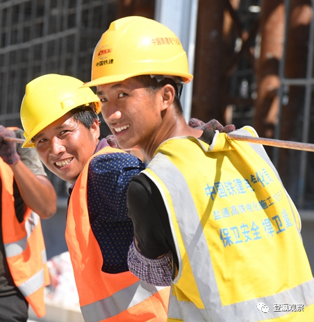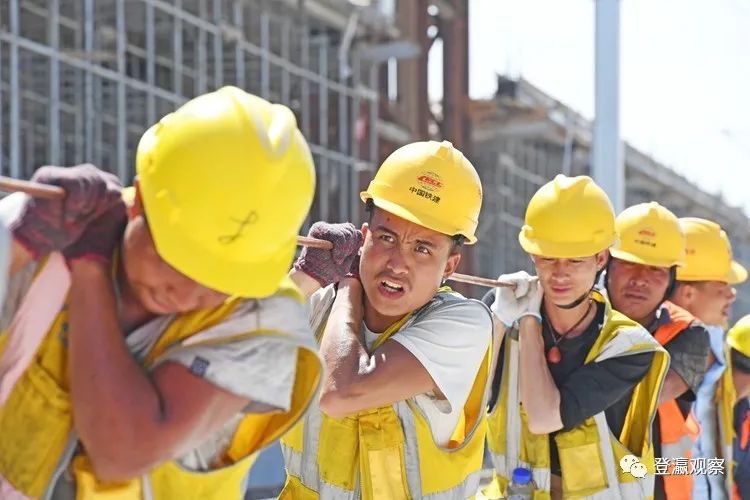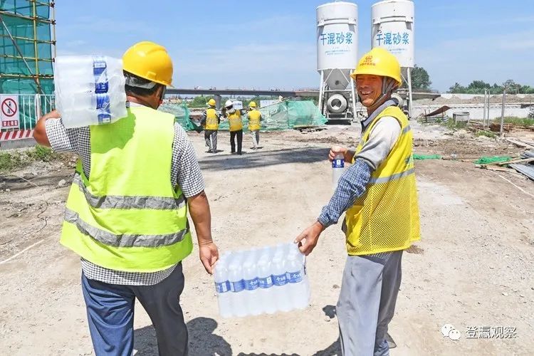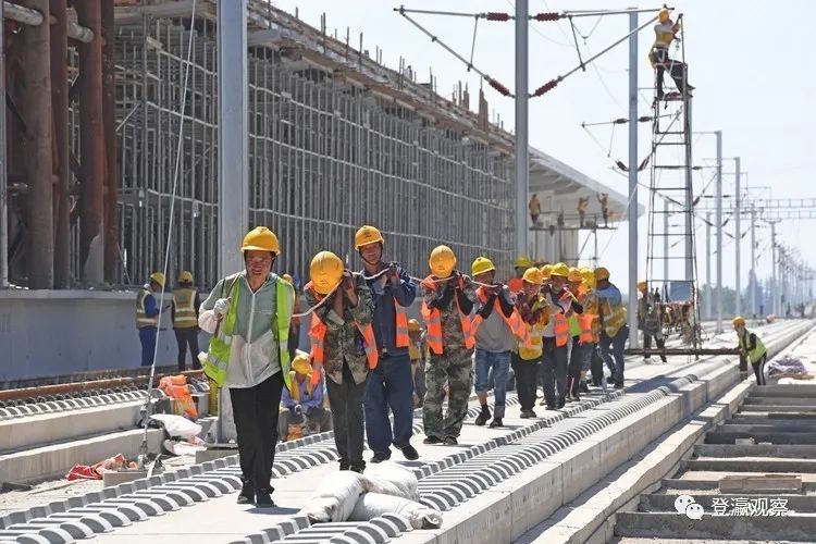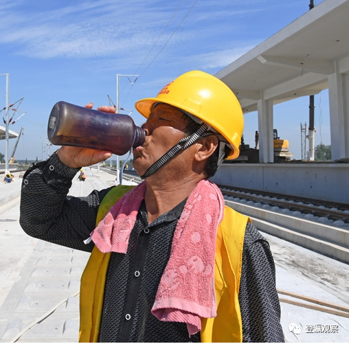 8月13日,在盐通铁路大丰站施工现场,400多名高铁建设者“战”高温,抢抓晴好天气,全力推进项目建设。