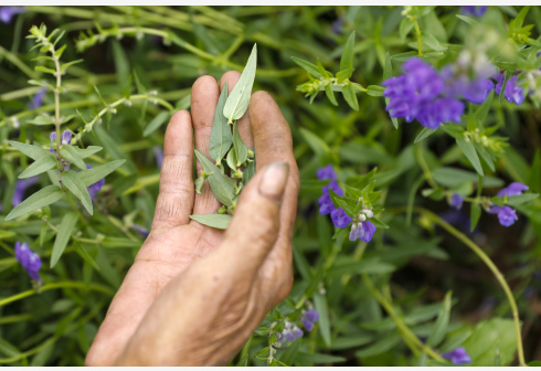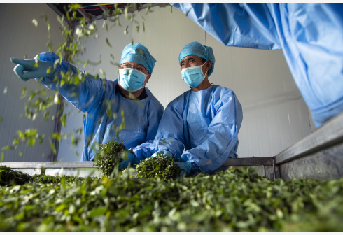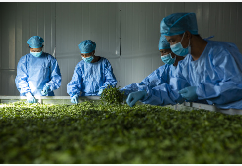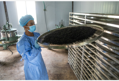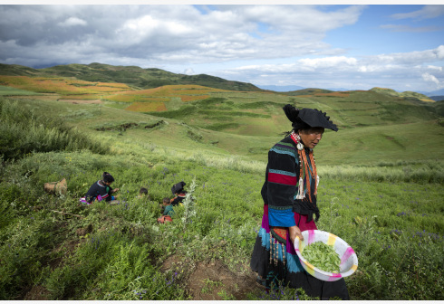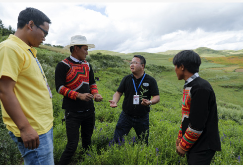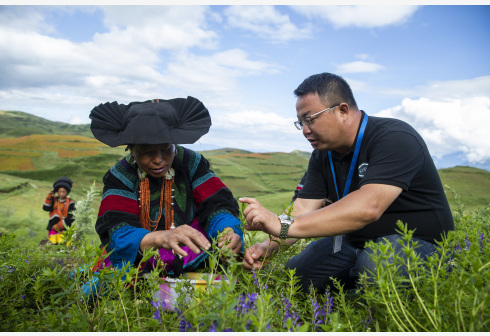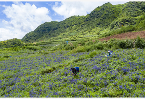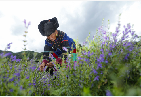 8月14日,在位于四川省凉山彝族自治州昭觉县龙沟乡阿尼米村瓦西社的黄芩种植基地,一名彝族老奶奶在采摘黄芩芽叶。 四川省凉山彝族自治州昭觉县龙沟乡位于古里拉达大峡谷中,属半农半牧高寒山区,是昭觉县较为偏远、贫困的几个乡镇之一。西南医科大学副教授夏纪毅是一位黄芩专家,在龙沟乡挂职乡党委脱贫攻坚专职副书记。2018年,他以科研资金为支撑,将自己研究多年的黄芩种在了平均海拔2450米的龙沟乡。试种的黄芩当年实现亩产920斤,亩均收入达到3220元左右,是当地百姓种植土豆亩均收入的2倍、种植荞麦亩均收入的3倍。