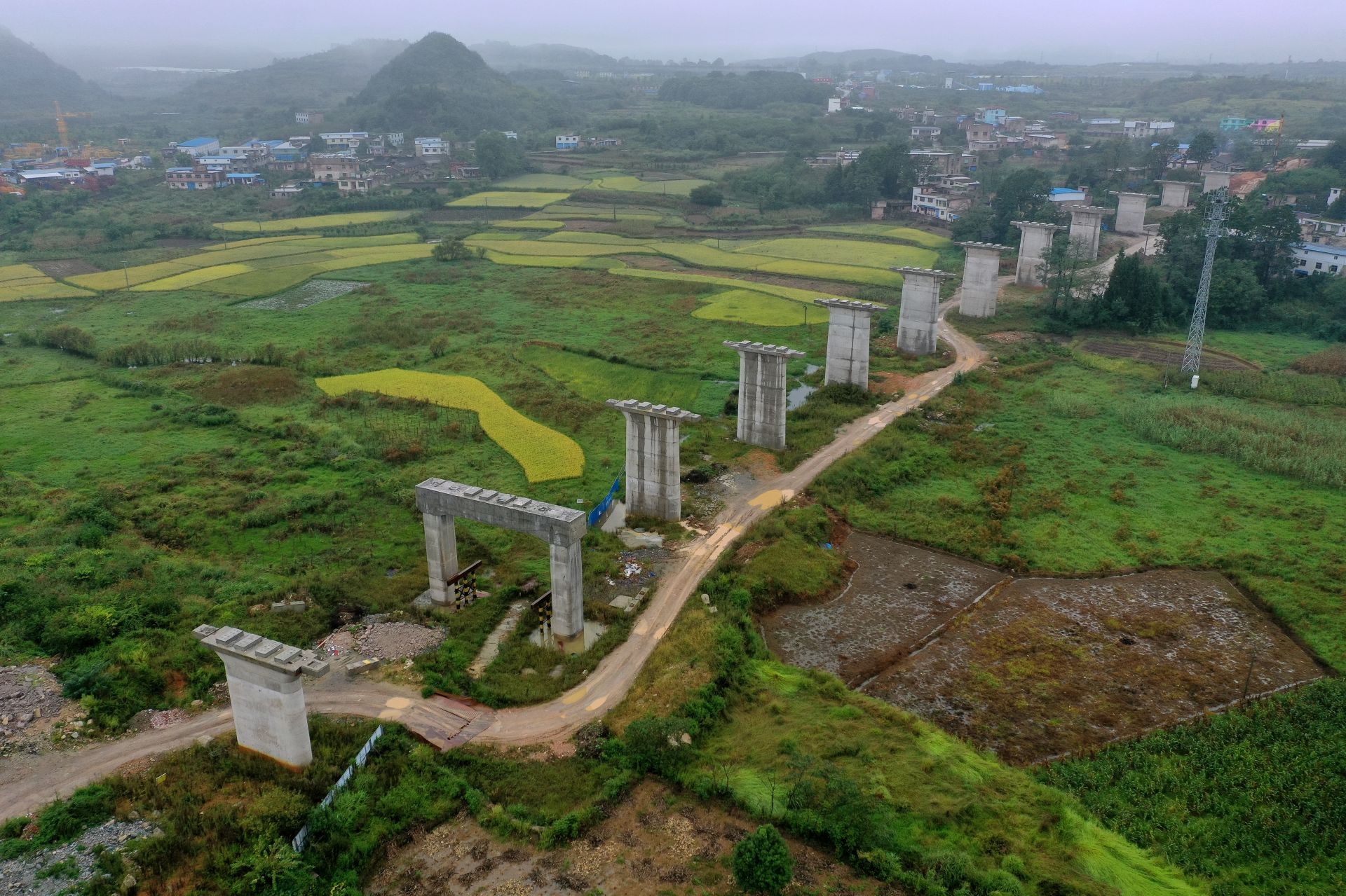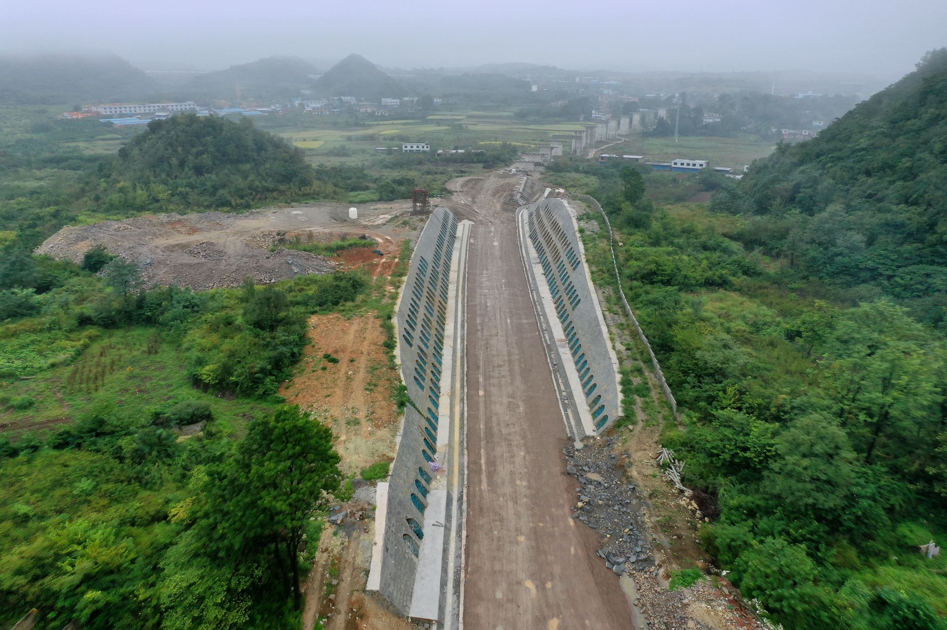 这是9月15日拍摄的贵阳市域快铁西南环线建设现场(无人机照片)。新华社记者 刘续 摄