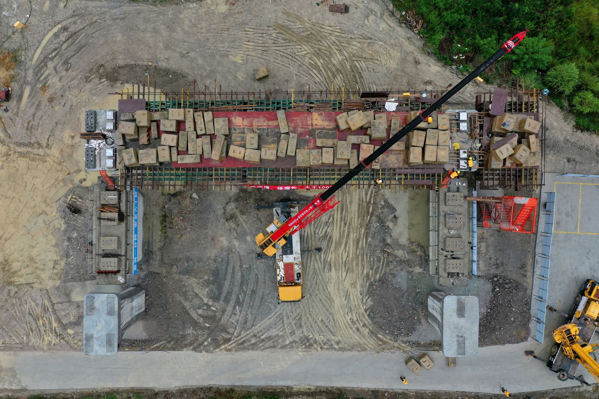 9月15日,中铁八局建设者在贵阳市域快铁西南环线月亮湖车站现场吊装石料(无人机照片)。 目前,随着月亮湖车站等重点控制性工程的加速推进,贵阳市域快铁西南环线建设进入冲刺阶段。据了解,该线路全长74公里,自贵阳市南明区小碧乡起到贵阳市白云区终,建成后将加速贵阳“半小时经济圈”的形成。 新华社记者 刘续 摄