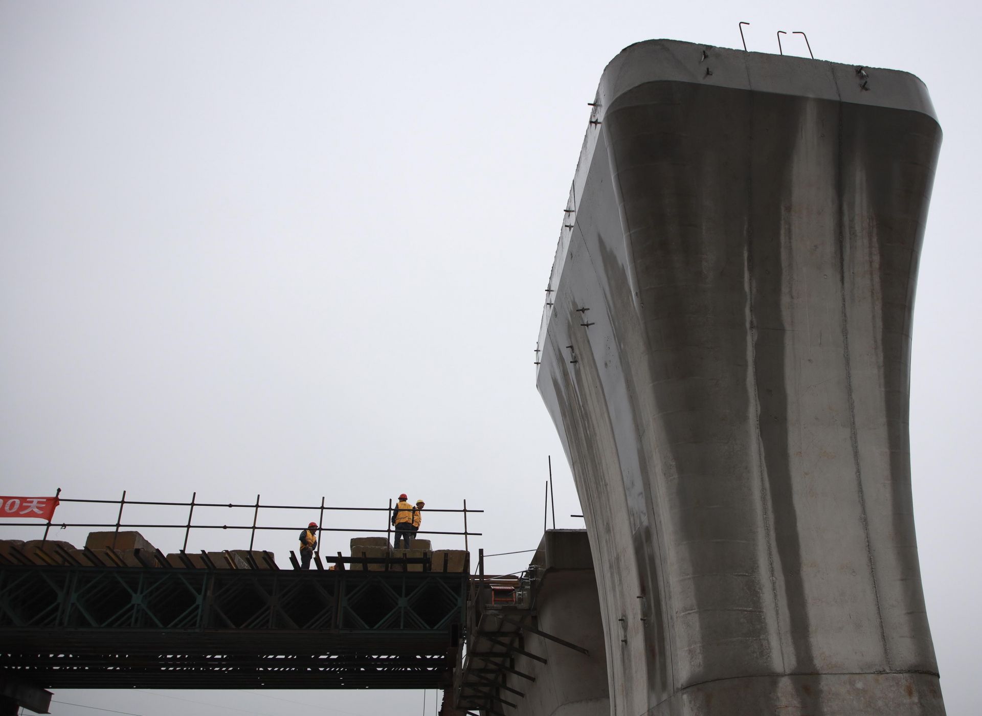 9月15日,中铁八局建设者在贵阳市域快铁西南环线月亮湖车站现场施工。新华社记者 刘续 摄
