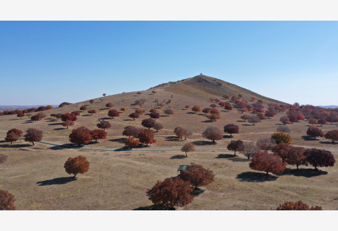 这是10月12日拍摄的五角枫生态旅游景区景色。金秋时节,内蒙古兴安盟科尔沁右翼中旗五角枫生态旅游景区的五角枫迎来最佳观赏期,棵棵枫树点缀了秋日草原,美景如画。 新华社记者 徐钦 摄