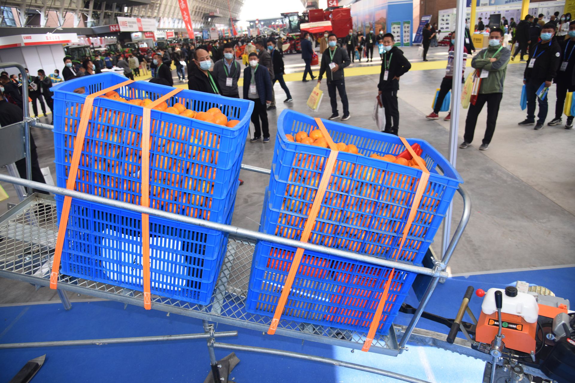 11月13日,观众在农机展上参观果园自动化运送装置。新华社记者 李紫恒 摄