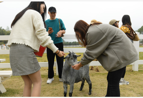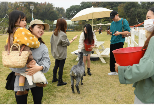 11月17日,游客们在菰城村一家动物农场游玩。浙江湖州吴兴区道场乡菰城村是一个毗邻主城区的古村落,村里利用闲置荒地引进一个集露营、宠物主题游为一体的动物农场,吸引不少游客来这里享受与动物和自然相处的时光。5月试运营以来,动物农场将当地的生态资源向旅游资源转化,带动产业提档升级和融合发展。 新华社记者 翁忻旸 摄