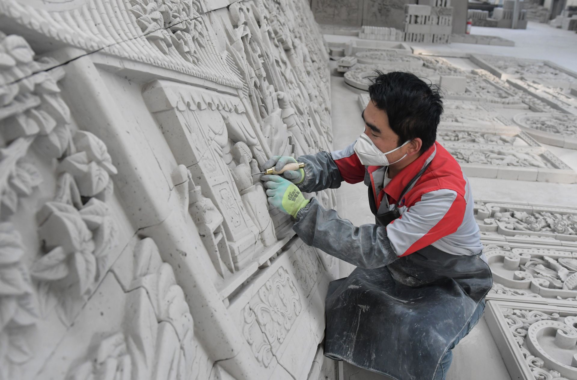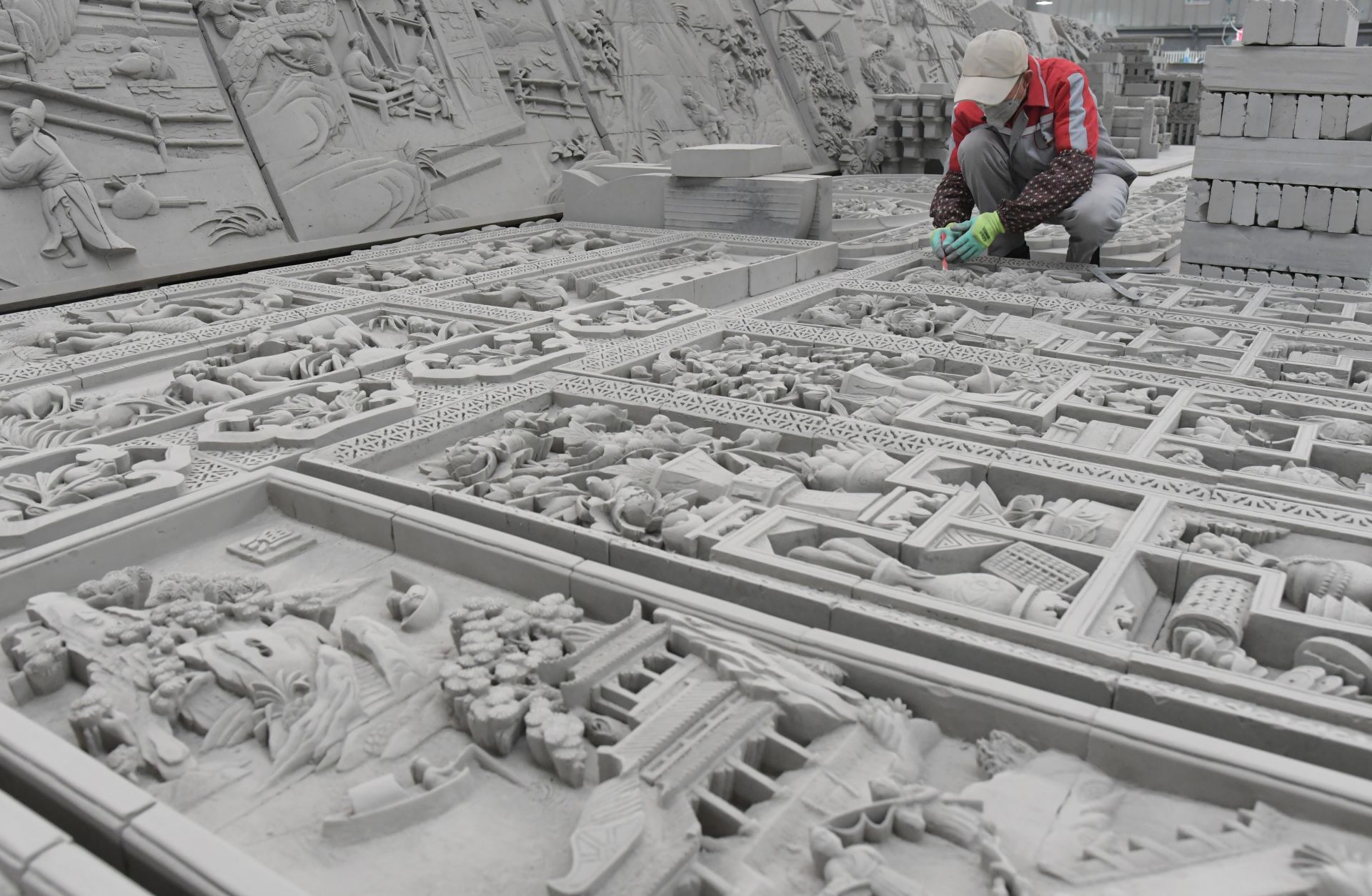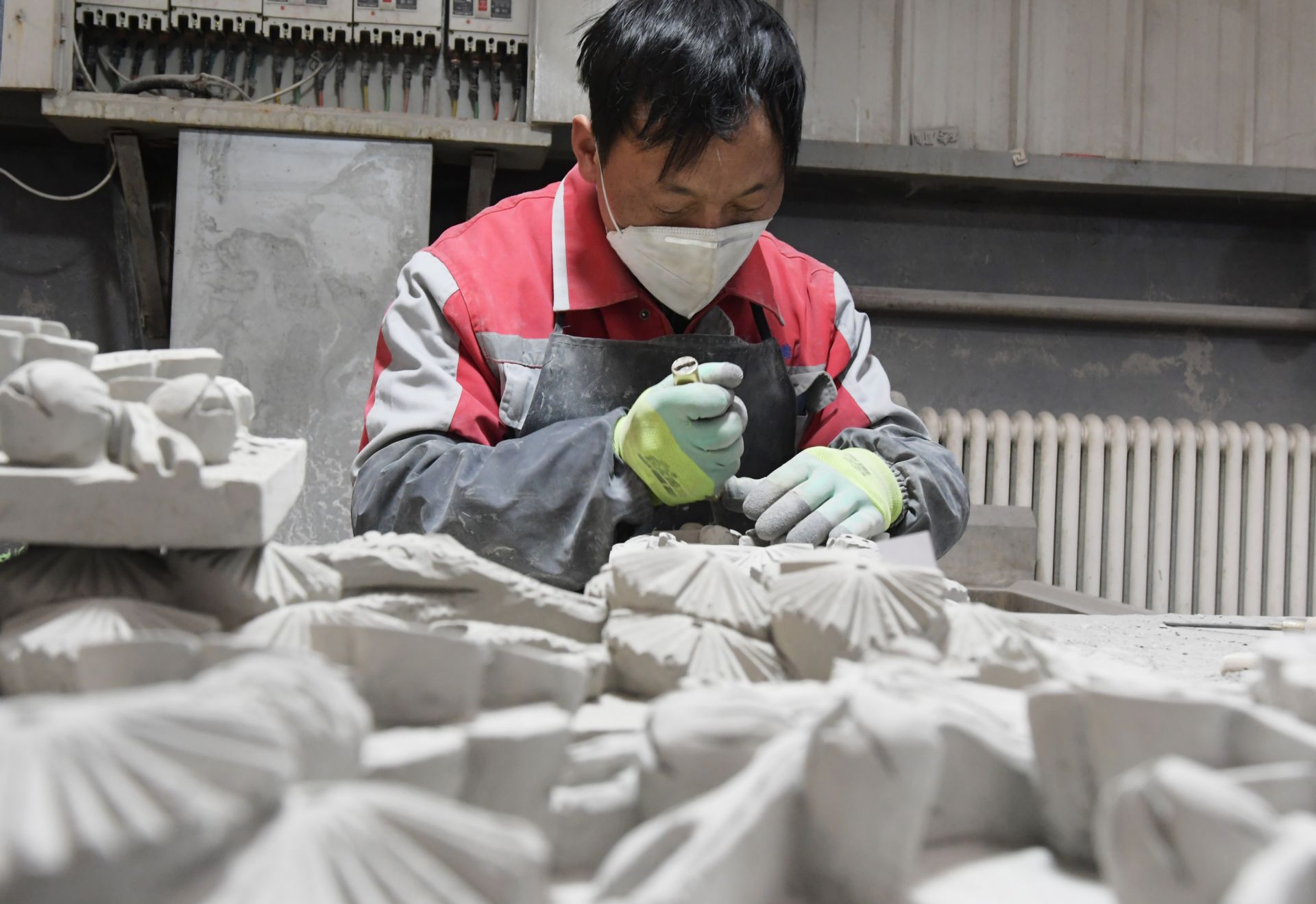 12月8日,在甘肃省临夏回族自治州临夏县一非遗扶贫就业工坊,艺人在制作砖雕作品。 临夏砖雕是甘肃临夏的传统民间艺术,主要用于亭台楼阁、园林、民居等的建筑装饰,以精细传神的雕刻技艺、古朴典雅的艺术魅力而闻名。2006年,临夏砖雕被列入第一批国家级非物质文化遗产名录。近年来,甘肃临夏有关部门和企业积极发展壮大非遗砖雕产业,通过“非遗+扶贫”模式,丰富砖雕产品类型,促进劳动力就近就业,帮助当地群众拓宽增收渠道。 新华社发(史有东 摄)