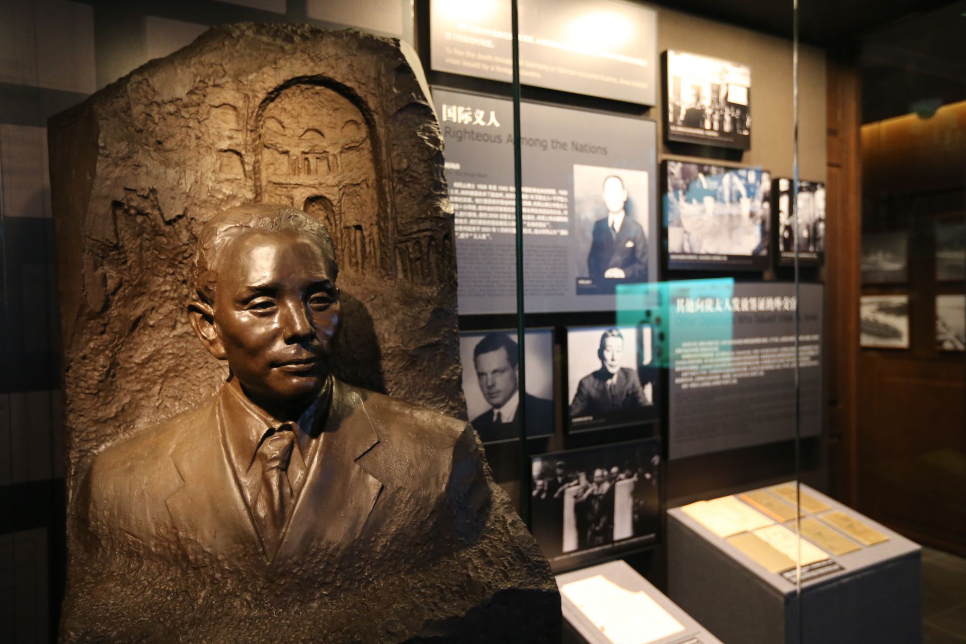 这是上海犹太难民纪念馆内陈列的何凤山塑像(12月8日摄)。何凤山有“中国的辛德勒”之称。1938年至1940年,何凤山担任中国驻奥地利维也纳总领事期间,向数千犹太人签发了“生命签证”,使他们得以逃脱纳粹魔爪。新华社记者 任珑 摄