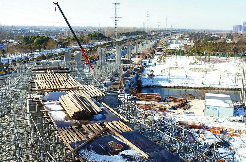 日前,在快速路网优化工程新都枢纽西北区域施工现场,支架搭设现场仍一片热火朝天,为争取春节前通车而努力奋战。