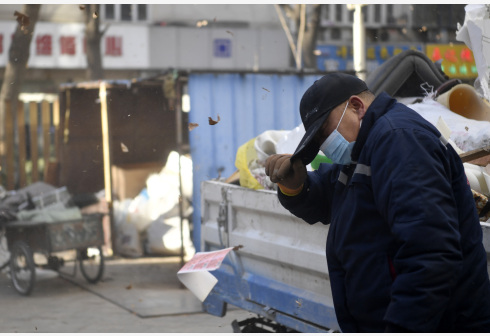 1月6日,天津市和平区城管委渣土所的清运人员在土山花园社区清运建筑垃圾时压低帽檐躲避寒风。当日,受强冷空气影响,天津市出现大风降温天气。根据天津市气象局预报,此次冷空气影响具有风力大、气温低、持续时间长等特点,最低气温或将突破近30年同期极端最低气温。寒潮来袭,在城市的各个角落,不少人依然坚守户外岗位,一个个“敢冻”的身影,保障着城市正常运行。 新华社记者 李然 摄