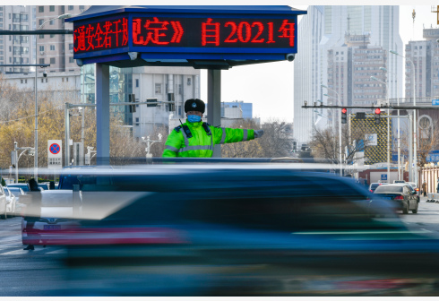 1月6日,在天津市和平区营口道路口,交警在指挥交通。当日,受强冷空气影响,天津市出现大风降温天气。根据天津市气象局预报,此次冷空气影响具有风力大、气温低、持续时间长等特点,最低气温或将突破近30年同期极端最低气温。寒潮来袭,在城市的各个角落,不少人依然坚守户外岗位,一个个“敢冻”的身影,保障着城市正常运行。新华社 发(孙凡越 摄)