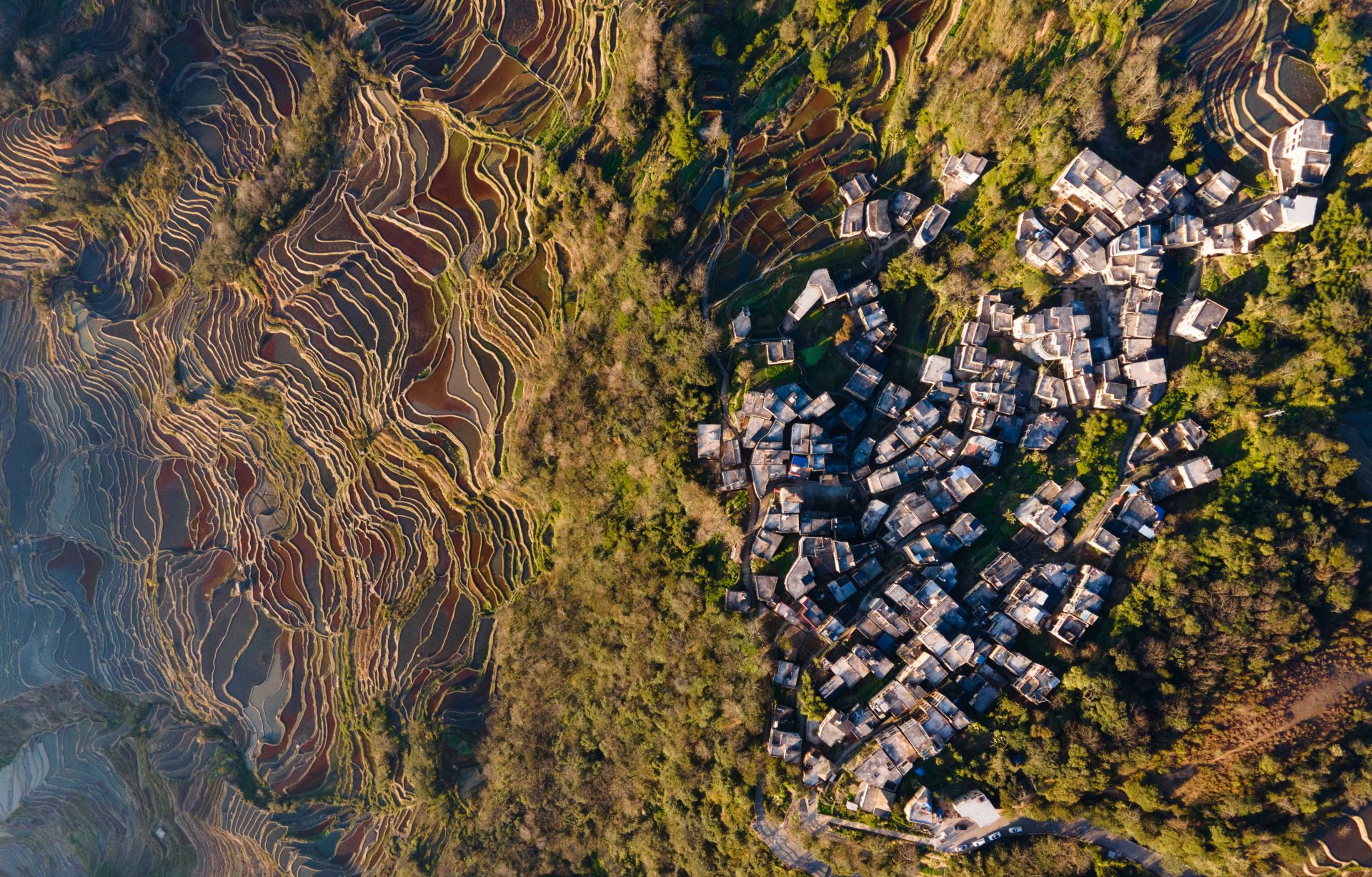 这是1月6日傍晚拍摄的哈尼梯田(无人机照片)。 新华社记者 王冠森 摄