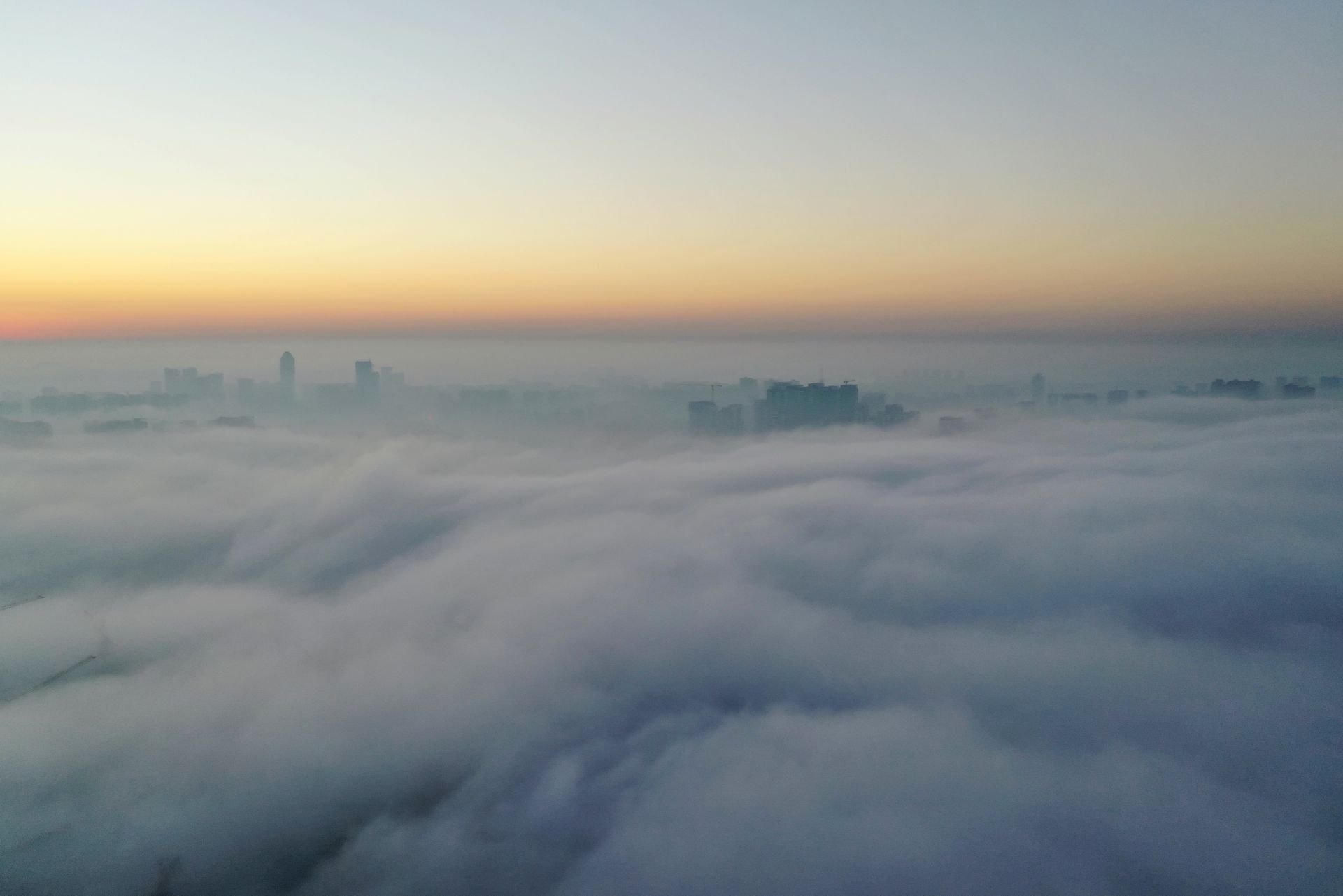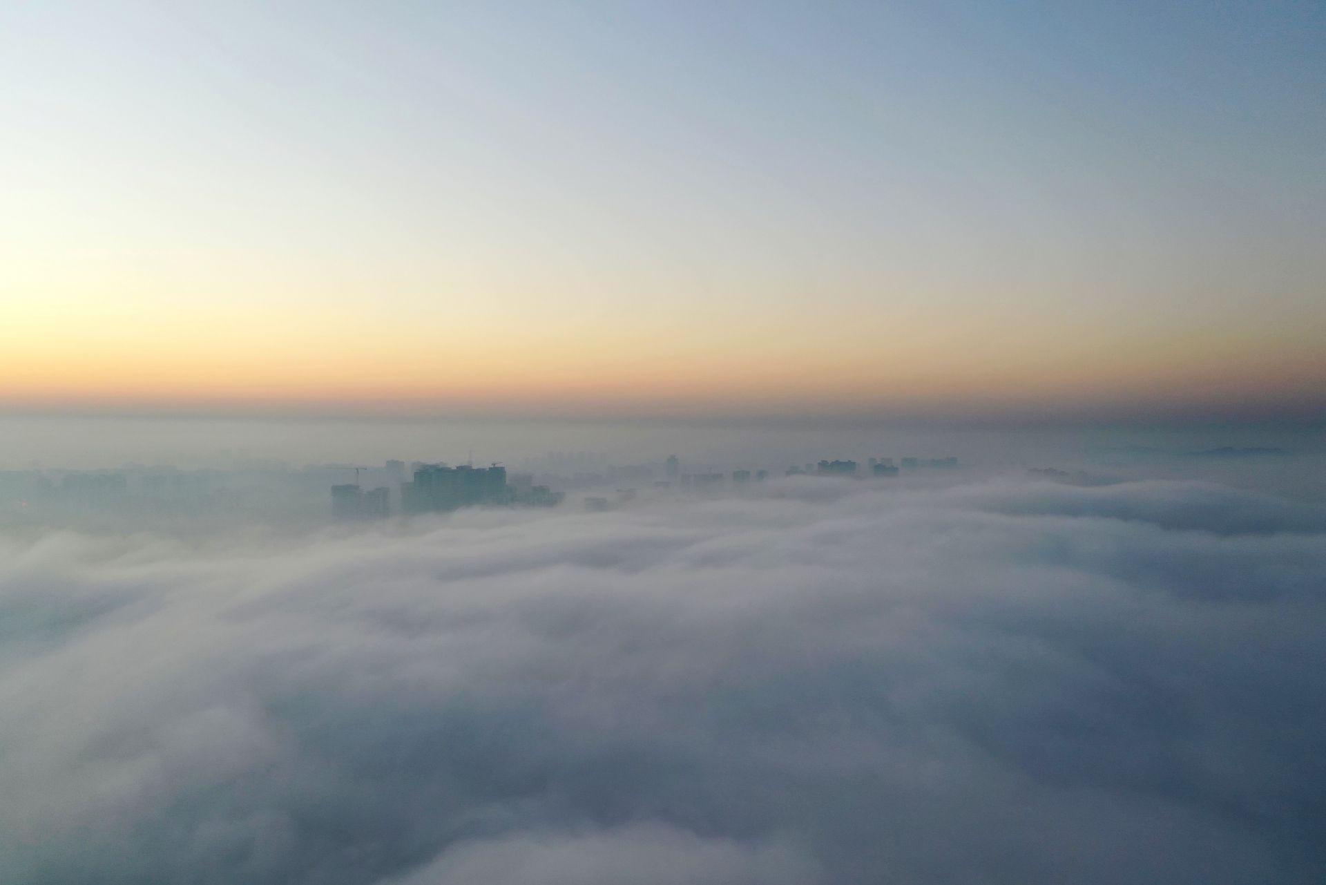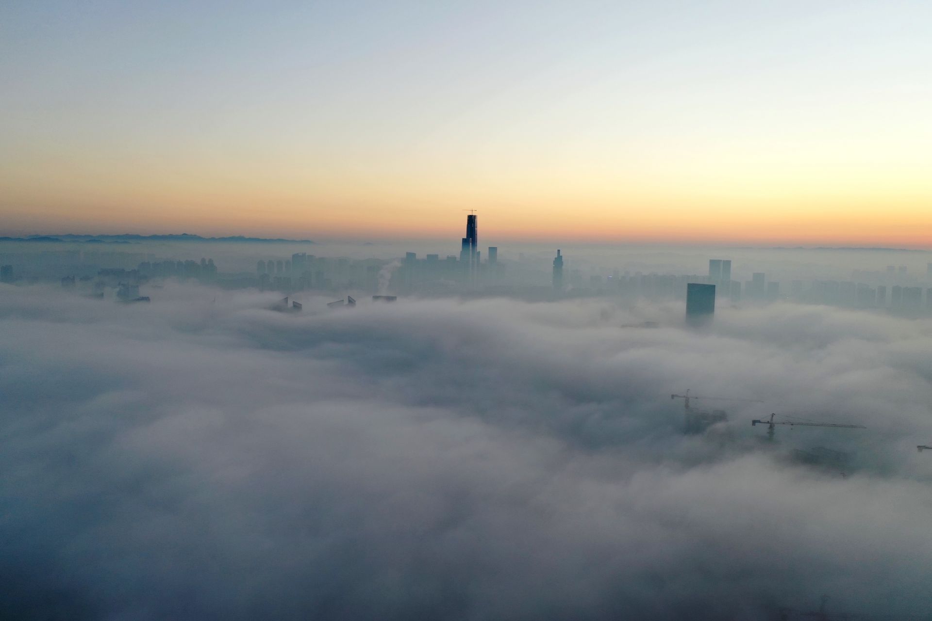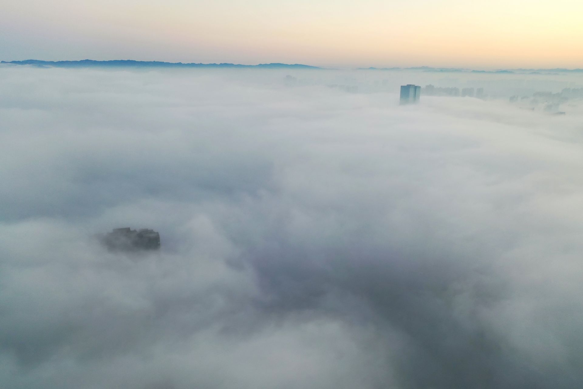 这是1月18日在贵阳市观山湖区拍摄的雾景(无人机照片)。 当日,贵阳出现大雾天气,城市楼宇在浓雾中若隐若现。 新华社记者刘续摄
