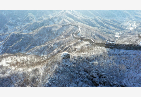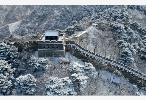 1月19日拍摄的北京怀柔慕田峪长城雪景(无人机照片)。当日,北京怀柔慕田峪长城被茫茫白雪覆盖,一派北国壮美风光。新华社 发(卜向东 摄)