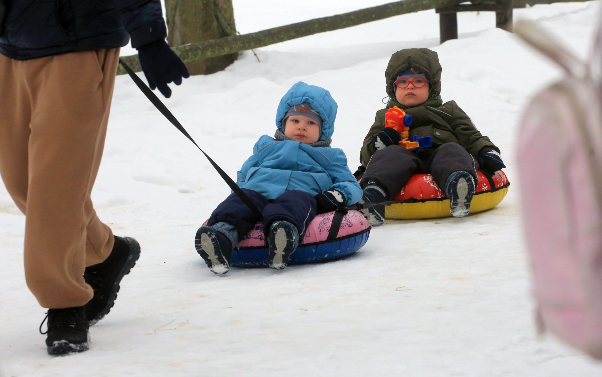 1月24日,孩子们在白俄罗斯首都明斯克郊区的民族建筑博物馆内乘坐滑雪气垫圈,感受雪趣。 正值隆冬冰雪时节,博物馆举办主题游园活动,让人们感受白俄罗斯传统冰雪文化的乐趣。 新华社发(任科夫摄)