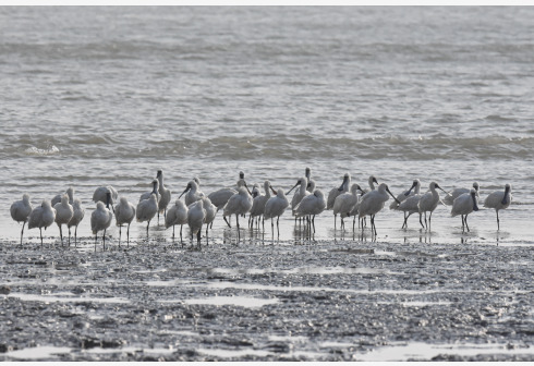 这是1月19日在海南儋州一处湿地拍摄的勺嘴鹬。 新华社记者 蒲晓旭 摄