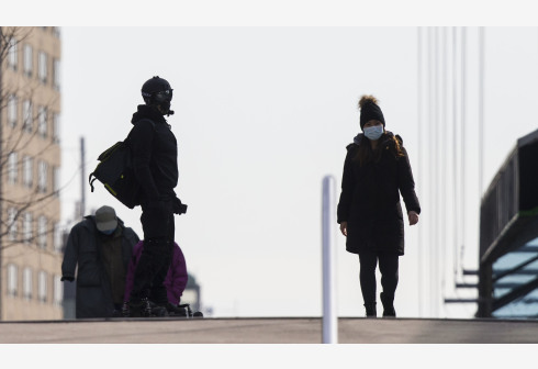 1月25日,在加拿大多伦多,戴口罩的行人走在街头。 新华社发(邹峥摄)