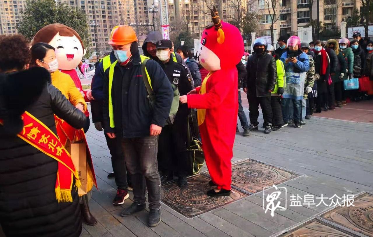 1月30日一大早,在盐南高新区,为感谢城市一线工作人员的辛勤付出,多家爱心企业特别准备了暖心的早餐和大礼包分发给辖区內的城管、环卫、绿化以及保洁等一线工作人员。盐阜大众报报业集团融媒体记者 黄海峰 摄