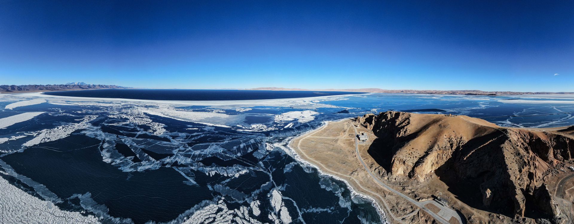 湖面结冰的纳木错(1月29日摄,无人机照片)。 新华社记者 普布扎西 摄