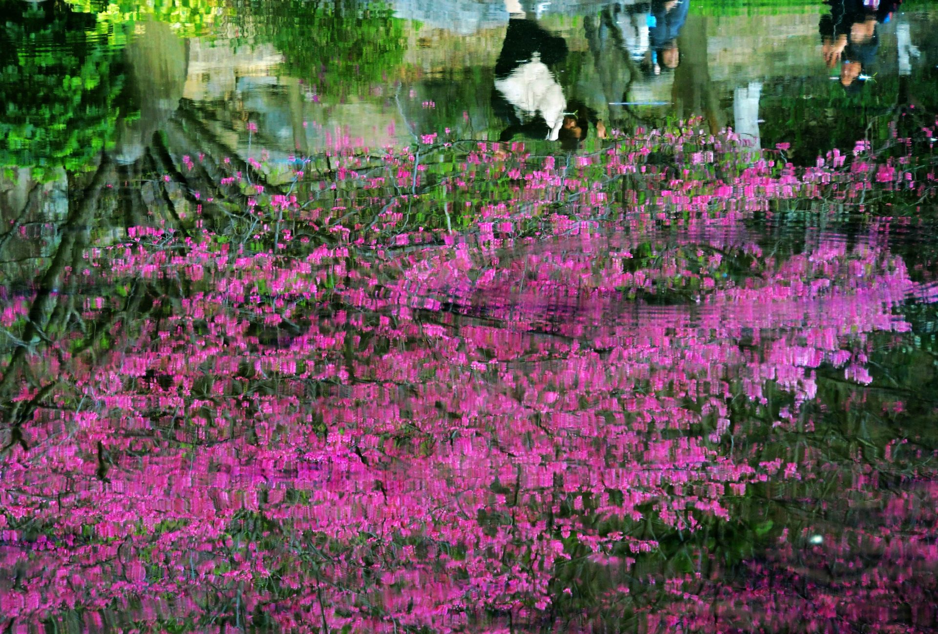 在福州国家森林公园,盛开的樱花和绿树倒映在清澈的湖水里(2月1月摄)。 近日,位于福建省福州市新店镇的福州国家森林公园里的樱花相继盛开,春意萌动。 新华社记者 魏培全 摄
