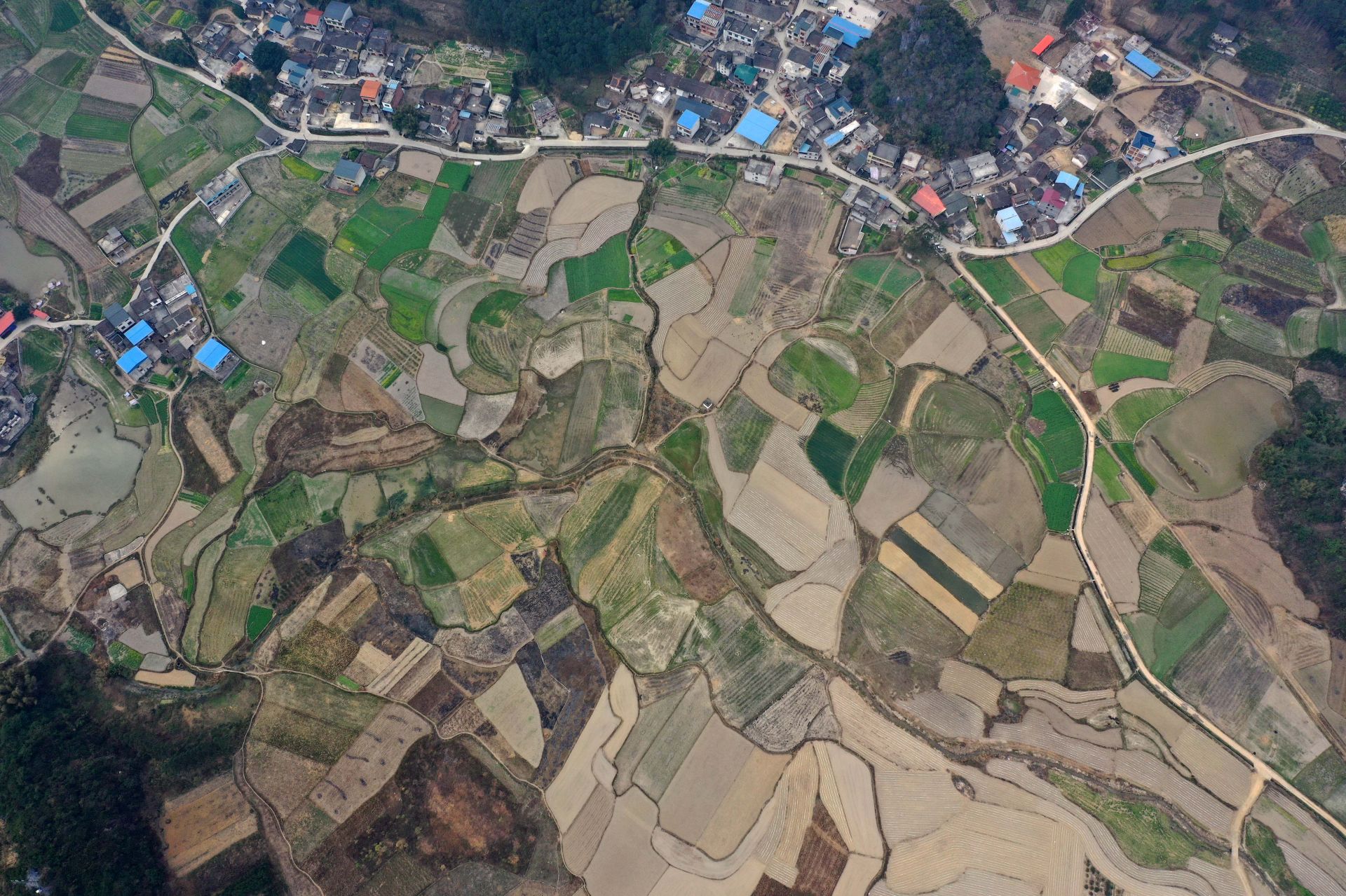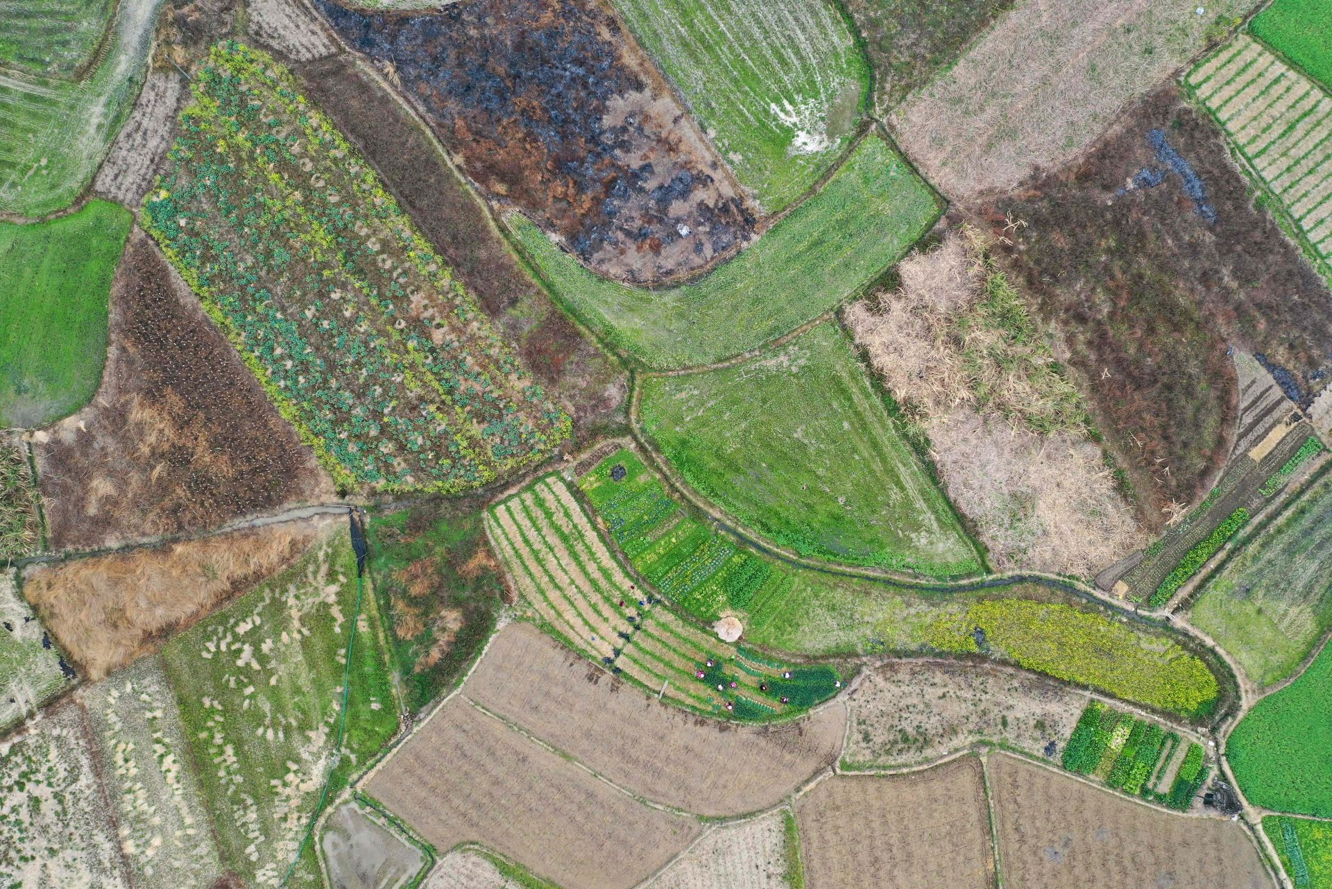 这是柳州市柳江区百朋镇小山村的田园风光(2月2日摄,无人机照片)。 立春将至,广西柳州市郊的田野随处可见村民忙碌的身影,乡村洋溢着春天的气息。 新华社记者 黄孝邦 摄