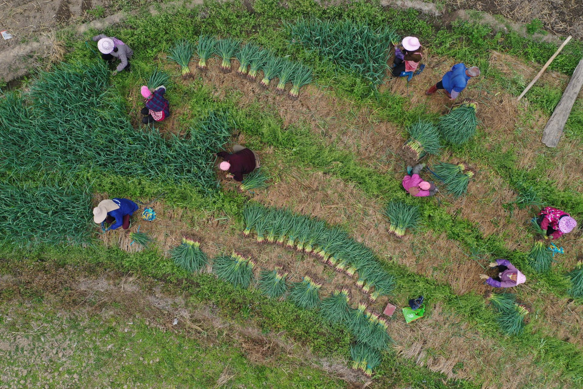 2月2日,在柳州市柳江区百朋镇小山村,村民在田间劳作(无人机照片)。新华社记者 黄孝邦 摄