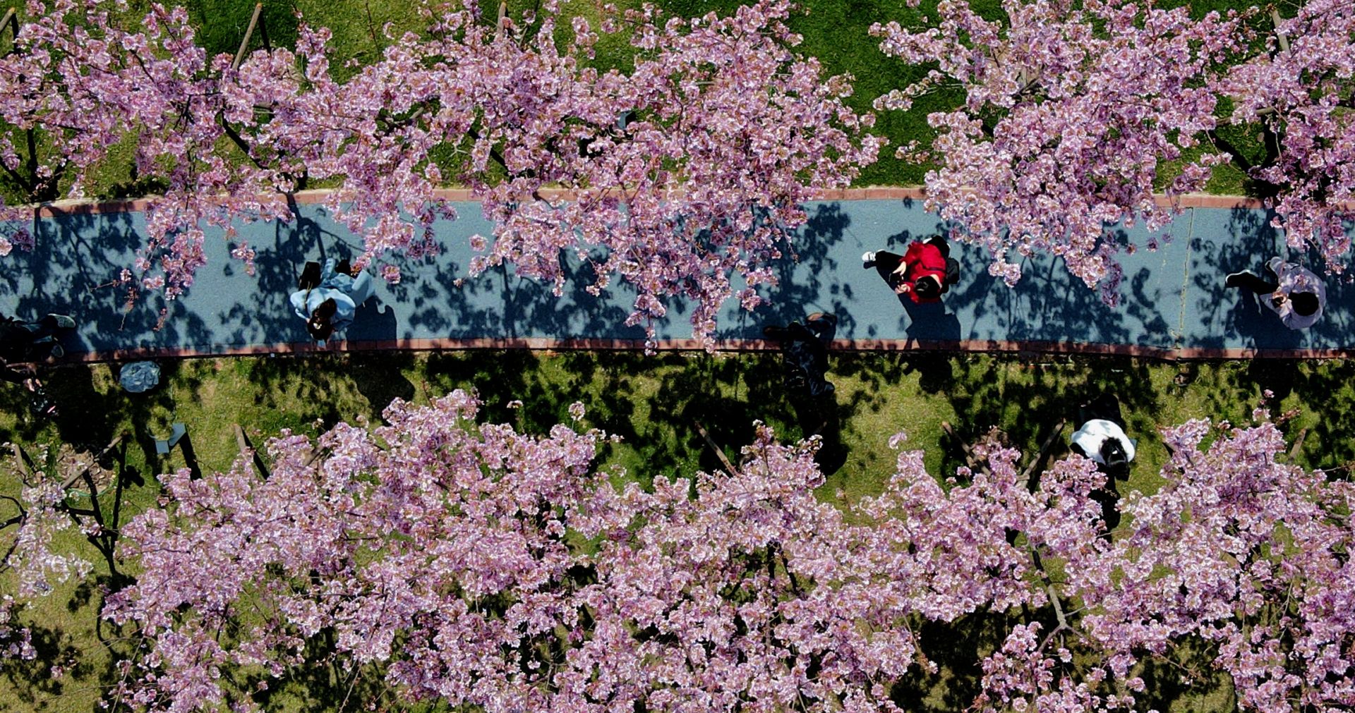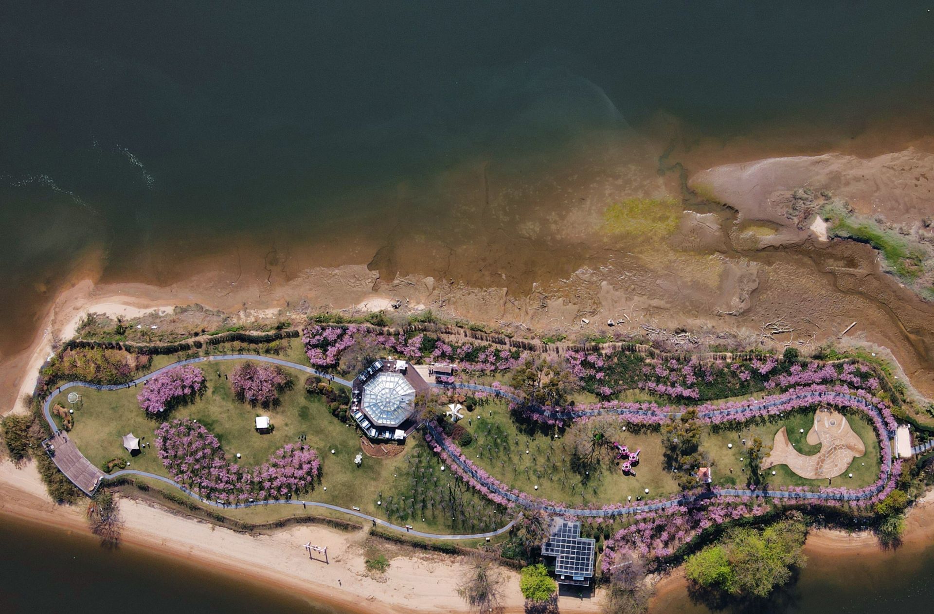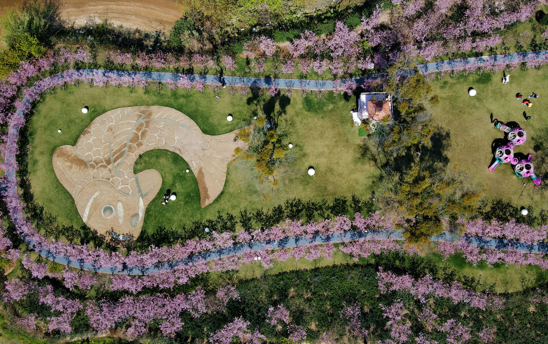 这是2月21日拍摄的上街镇沙堤村的鲤鱼洲樱花岛樱花步道(无人机照片)。 新华社记者 魏培全 摄