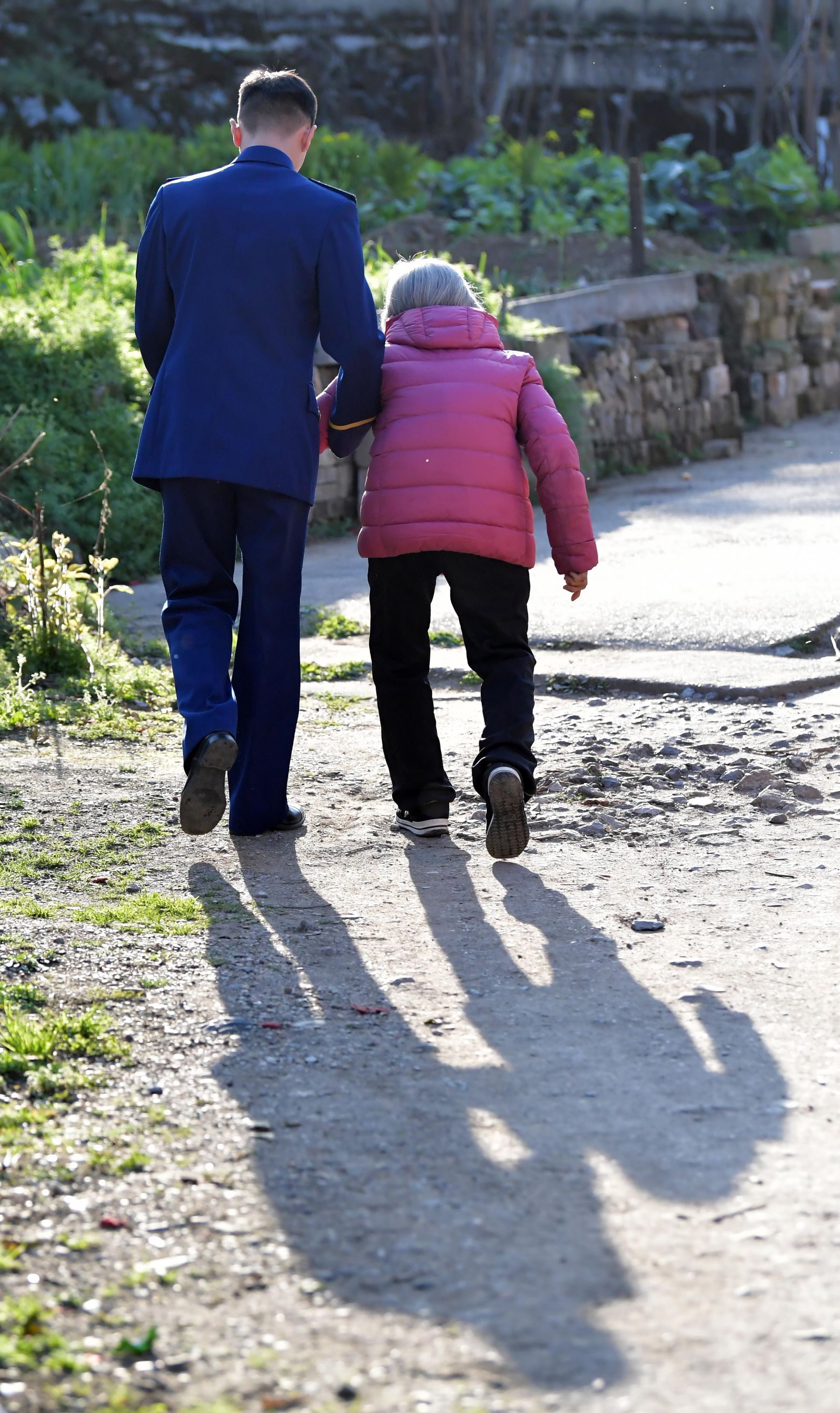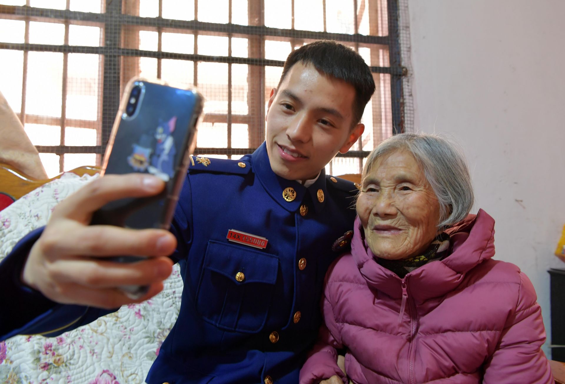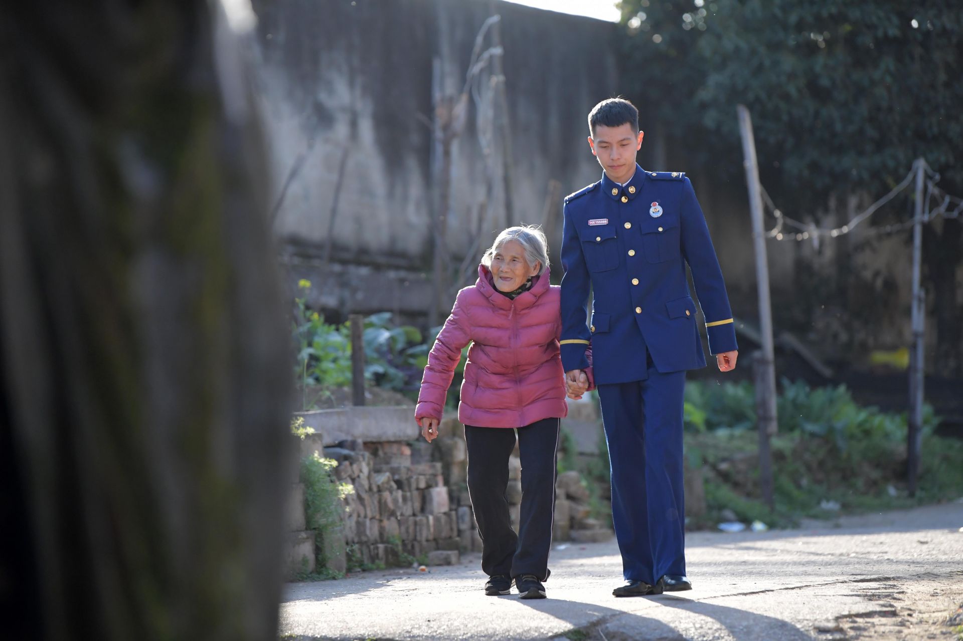 这是2020年5月,张佳港陪外婆在影楼拍摄的照片。当时外公由于身体原因未能成行,张佳港陪外婆完成了拍摄(资料照片)。 近来,江西一名消防员和八旬外婆拍摄的一组婚纱照在网络上热传。照片中的男士名叫张佳港,今年24岁,是江西省新余市分宜县消防救援大队消防员;老人名叫唐才英,今年85岁,曾是分宜县人民医院保洁员。24年前,61岁的唐才英在医院捡到一对弃婴,分别取名张佳港、张佳回。靠工资、卖菜和卖废品的收入,唐才英和丈夫将自己的亲生儿女和收养的6名孩子抚养长大。由于张佳港和老人的外孙一起长大,所以也把老人叫外婆。 2001年,在得知唐才英老人收养孤儿的事情后,分宜消防的消防员们开始资助他们。20年来,消防员换了一茬又一茬,但关爱帮助从未断过。长期的帮扶,使得张佳港把消防队当做“第二个家”,并立志当一名消防员。2016年,张佳港如愿成为一名消防员。 张佳港说,选择做一名消防员也是为了回报社会,“外婆给我了第二次生命,帮助过我的消防员们给了我第三次生命。” 2020年5月,张佳港利用休假时间,悄悄为外公外婆准备了一个惊喜——带他们拍一组婚纱照。但外公由于身体原因未能成行,张佳港便代替外公陪外婆完成了拍摄。 现在,张佳港和同事一起资助了两名家庭困难的学生,继续传递着爱。“我会尽我所能,让这些孩子感受到社会的温暖和善意。”张佳港说。 新华社记者 彭昭之 摄