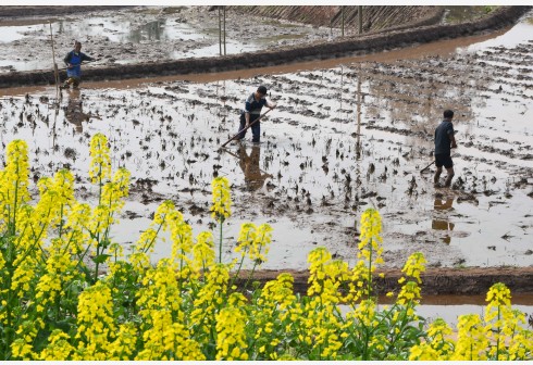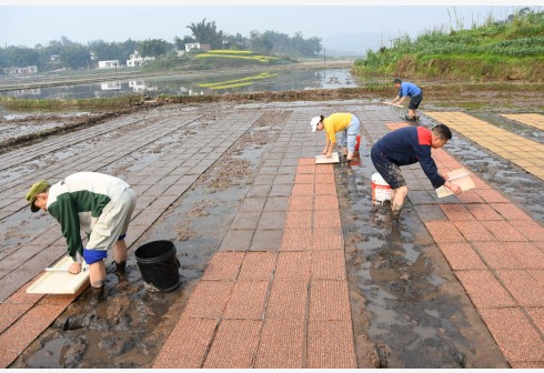 2月24日,在四川省宜宾市江安县大田村,当地农民在田里平整秧床。近日气温回升,四川进入春耕备耕时期。犁地、播种、育秧苗、施肥……在四川各地乡村,农民们纷纷赶早春,抢农时,备战春耕。新华社记者 高健钧 摄