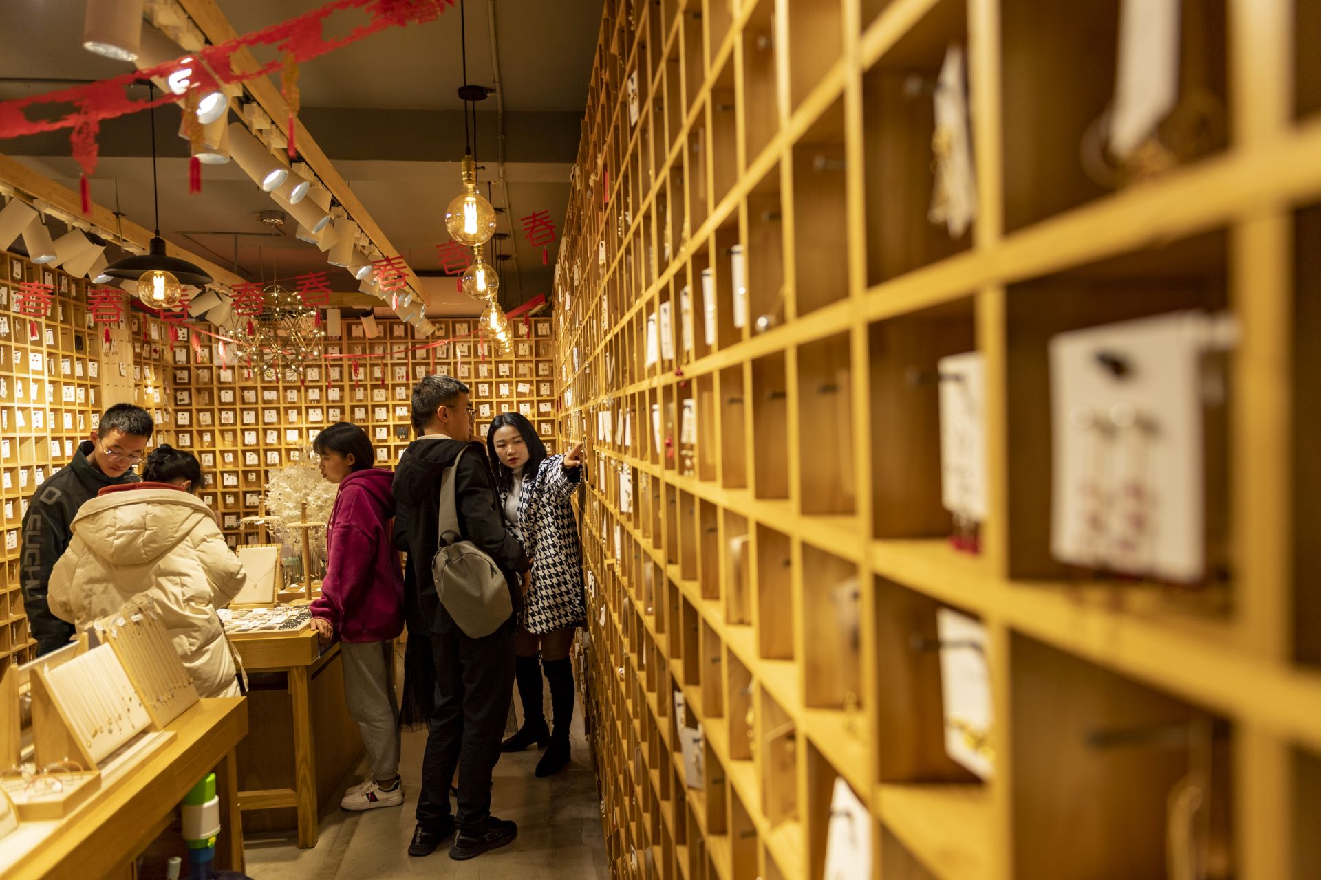 3月3日,游客在大理古城内挑选饰品。新华社记者 陈欣波 摄