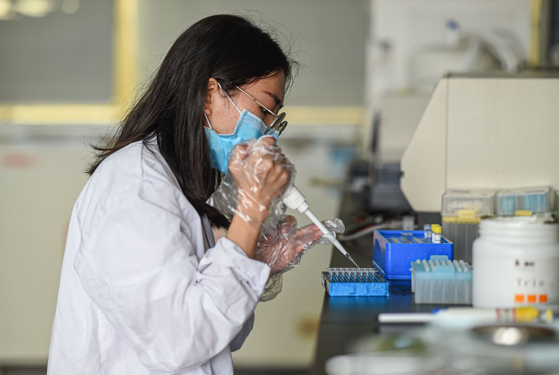 3月11日,中国热带农业科学院椰子研究所的科研人员在海南文昌的实验室内进行矮种椰子相关研究。 新华社记者 蒲晓旭 摄