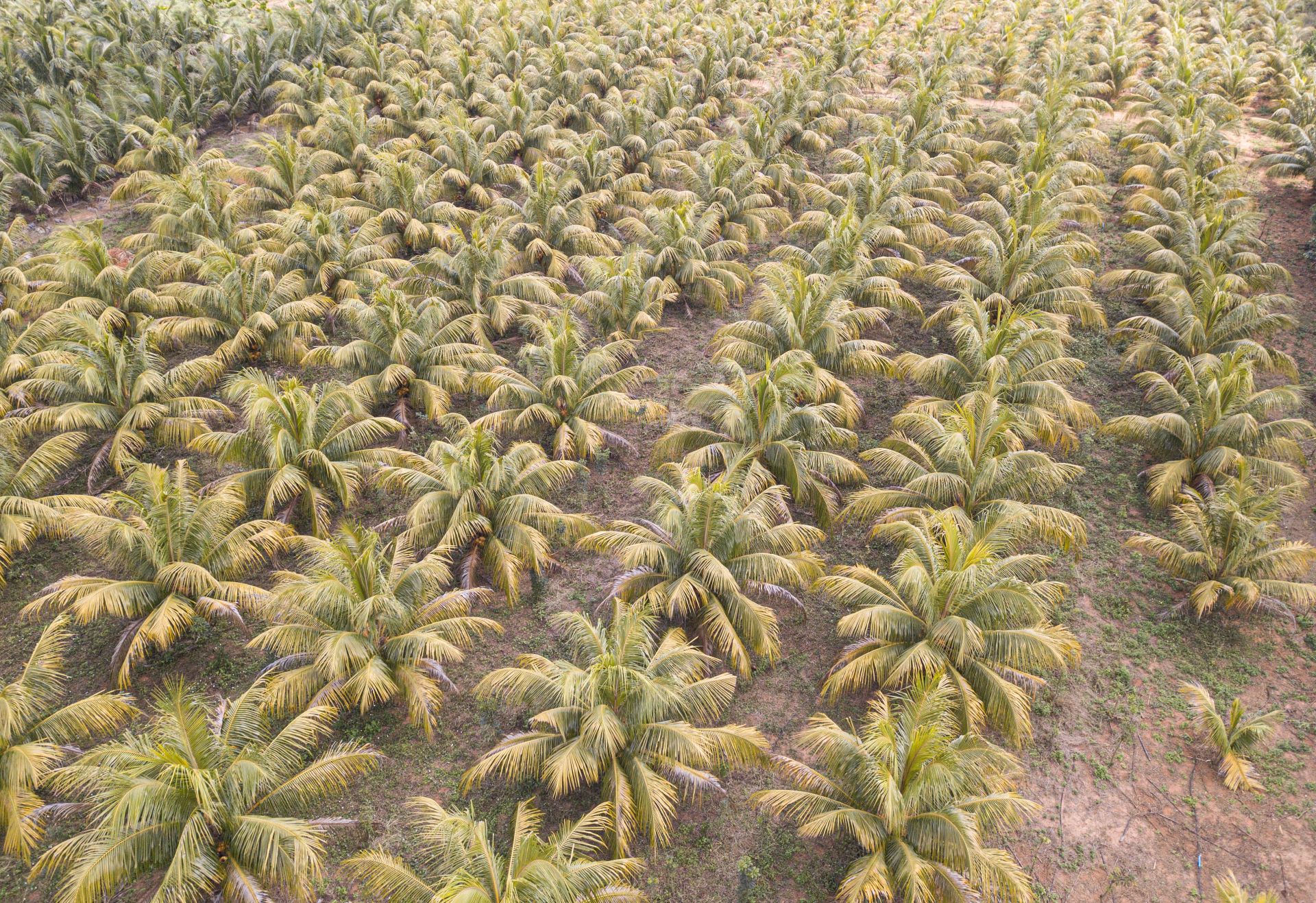 这是3月10日在位于海南文昌的中国热带农业科学院椰子研究所科研试验基地内拍摄的一处矮种椰林(无人机照片)。 “文椰2号”“文椰3号”和“文椰4号”,是由中国热带农业科学院椰子研究所选育的矮种椰子。相较传统高种椰子,上述“文椰”系列矮种椰子具有产果早、产果量高、椰水甜和香味浓郁等优势。其早期结果,人们蹲在地上伸手便能摘到。近年来,“文椰”系列矮种型椰子正逐步在海南推广。 新华社记者 蒲晓旭 摄