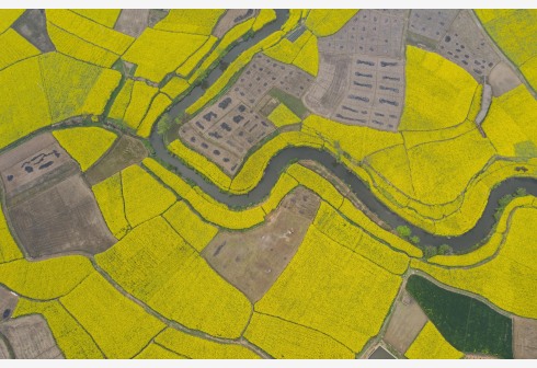 安州区乐兴镇莲花村的油菜花海(3月14日摄,无人机照片)。近日,四川省绵阳市安州区第二届油菜花节在秀水镇龙泉村举行,乡村民谣、旗袍汉服秀、农事体验及安州特产线上线下展销等活动为游客提供多样的休闲体验。近年来,安州区依托传统农业,以花为媒,通过乡村旅游巩固脱贫攻坚成果,助推乡村振兴。新华社记者 江宏景 摄