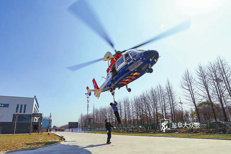 随着我市海上风电迅速发展,海上机组单机容量逐年递增,海上风电逐步走向远海深海,海上环境变得更加复杂,行业对应急处置海上突发事件的机制与能力的需求也越发强烈。3月10日上午,大丰风电产业园内,三峡新能源盐城大丰有限公司组织开展了一场三峡新能源江苏大丰H8-2#300兆瓦海上风电场工程项目直升机救援演练。此次演习模拟海上风电场工程项目F49号桩,施工过程中突发机械伤害事故,造成1名作业人员受伤,紧急调配直升机开展救援。模拟的事故现场距离海岸72公里,普通交通船从码头行驶至风电场,单程需5小时左右;将伤员从风电场转移到岸上最近的中心医院需7小时左右。而此次使用直升机救援,从陆上临时起降点起飞,到将伤员送上救护车,仅用时1小时。此次演习检验了海上风电突发事件应急处置能力,完善了多部门、多船舶协作联动救援机制,更是为盐城的海上风电架设起一条可靠的“空中生命线”。 盐阜大众报报业集团融媒体记者 郜野乔 摄
